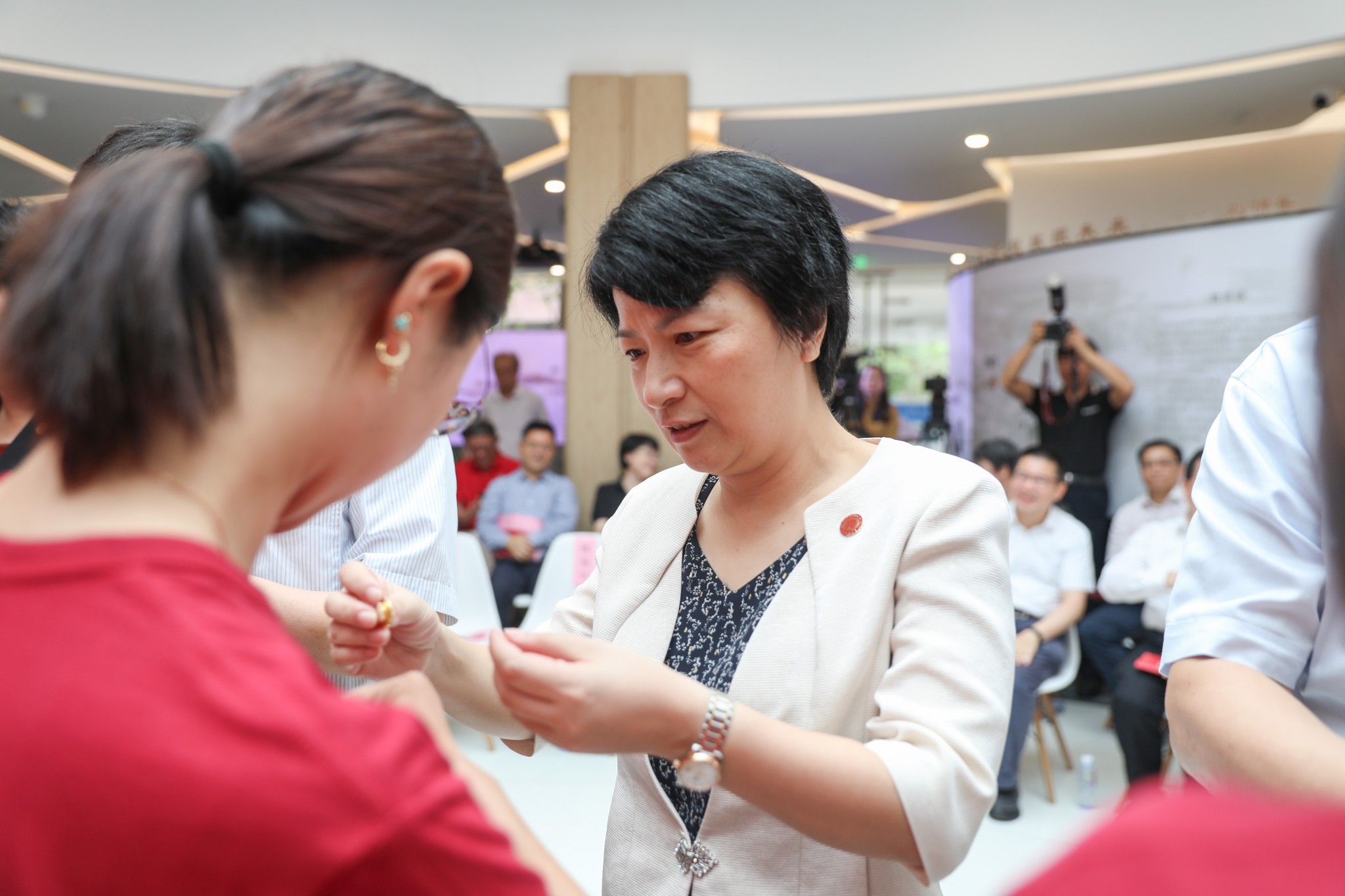 华东师大党委书记梅兵等校领导为新入职教师代表佩戴校徽