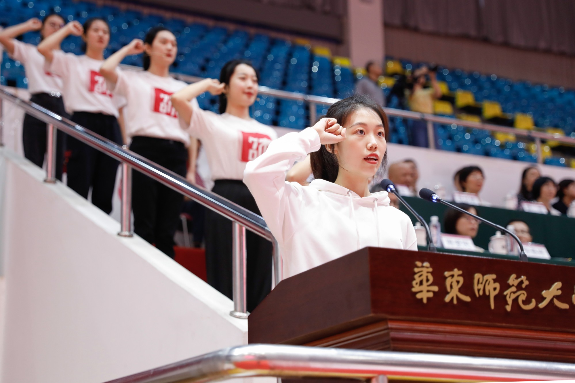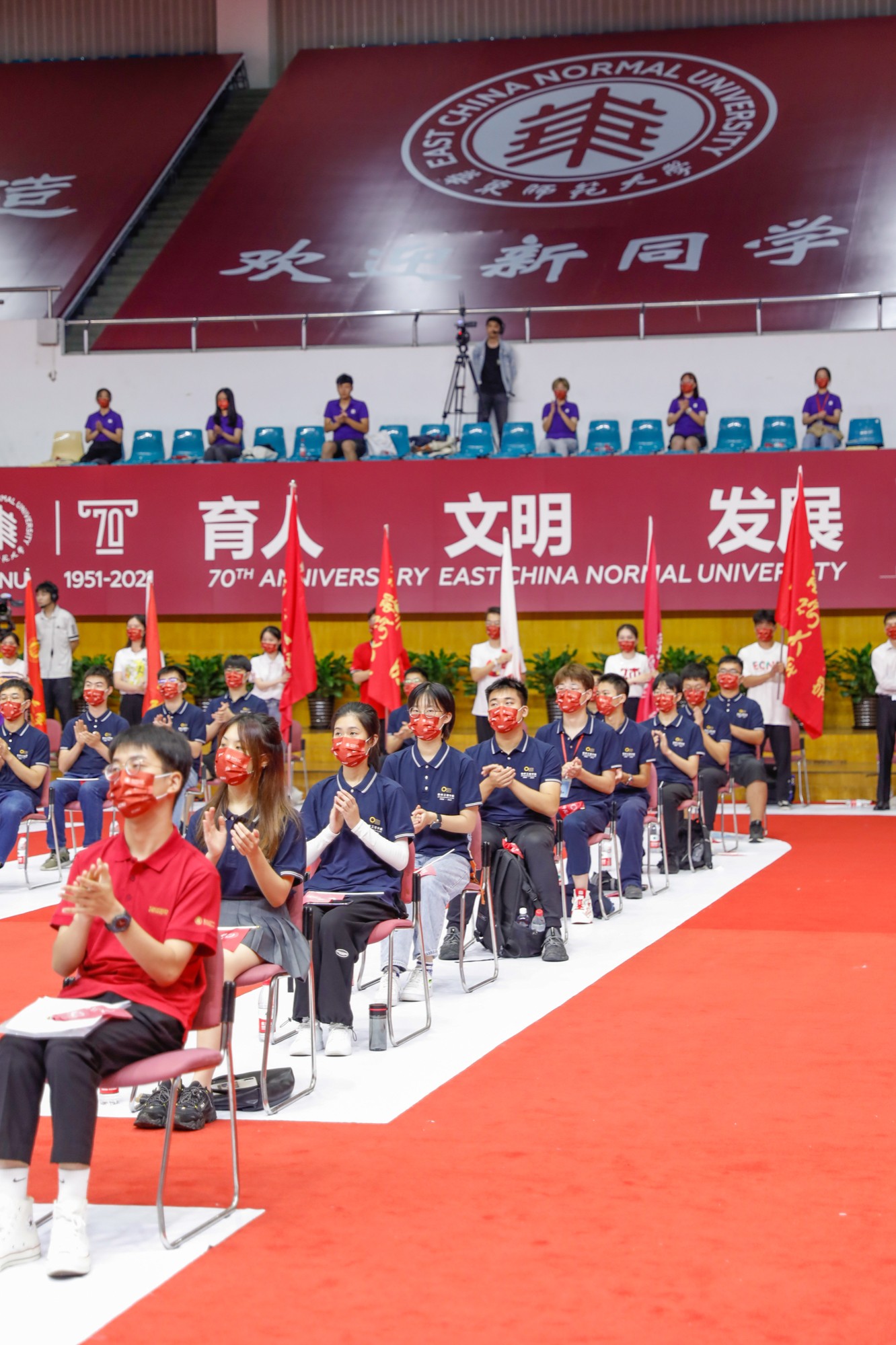 室外,台风带来的风雨依旧淅沥;室内,新一代华东师大人热血昂扬。在中国共产党建党100周年、华东师大建校70周年入学的这届新生,将以“华东师大人”之名,怀揣赤子之心和崇高理想,开启砥砺奋斗的新篇章。