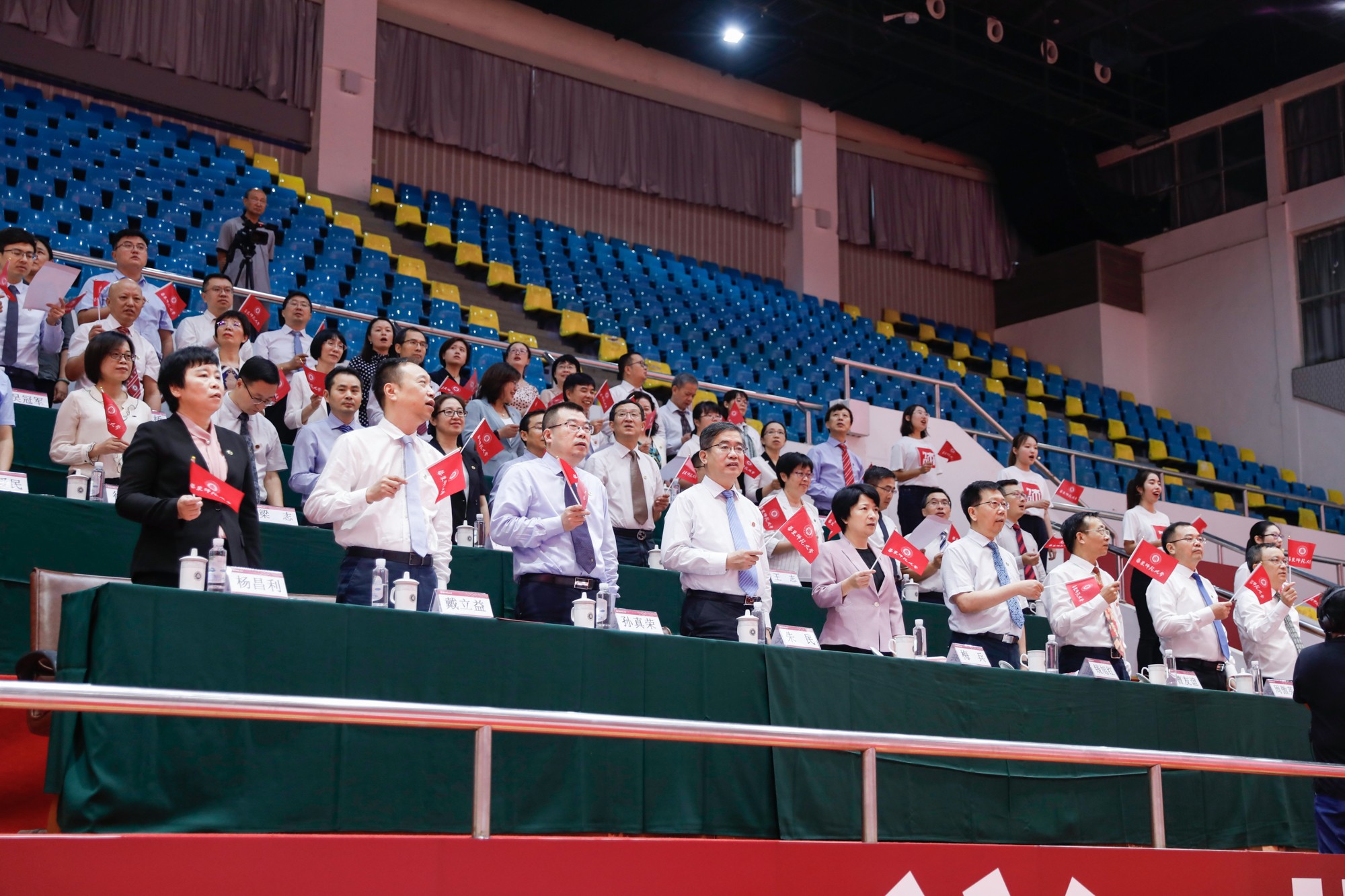 在庄严的国歌声中,2021级新生开学典礼正式开始。