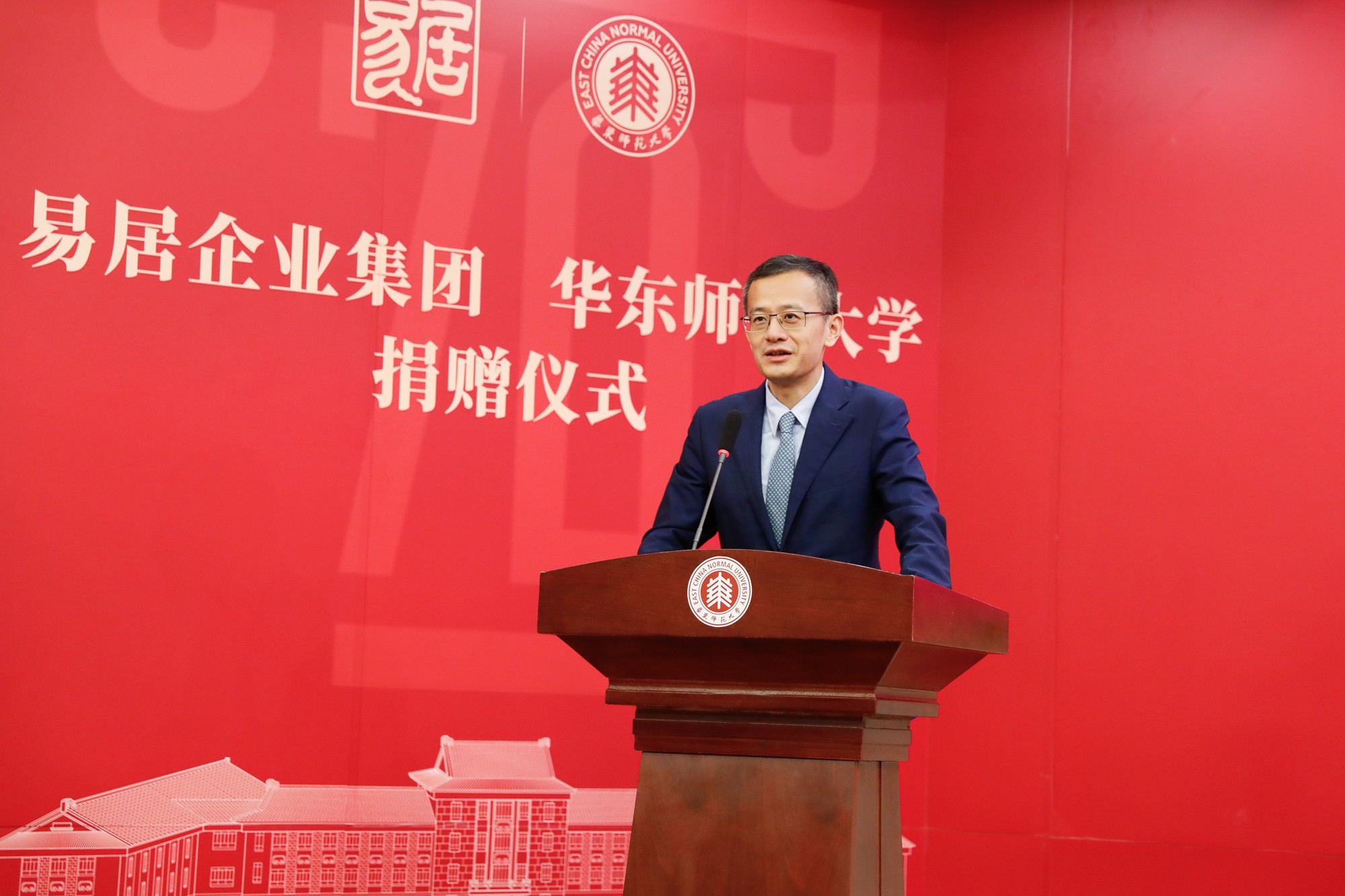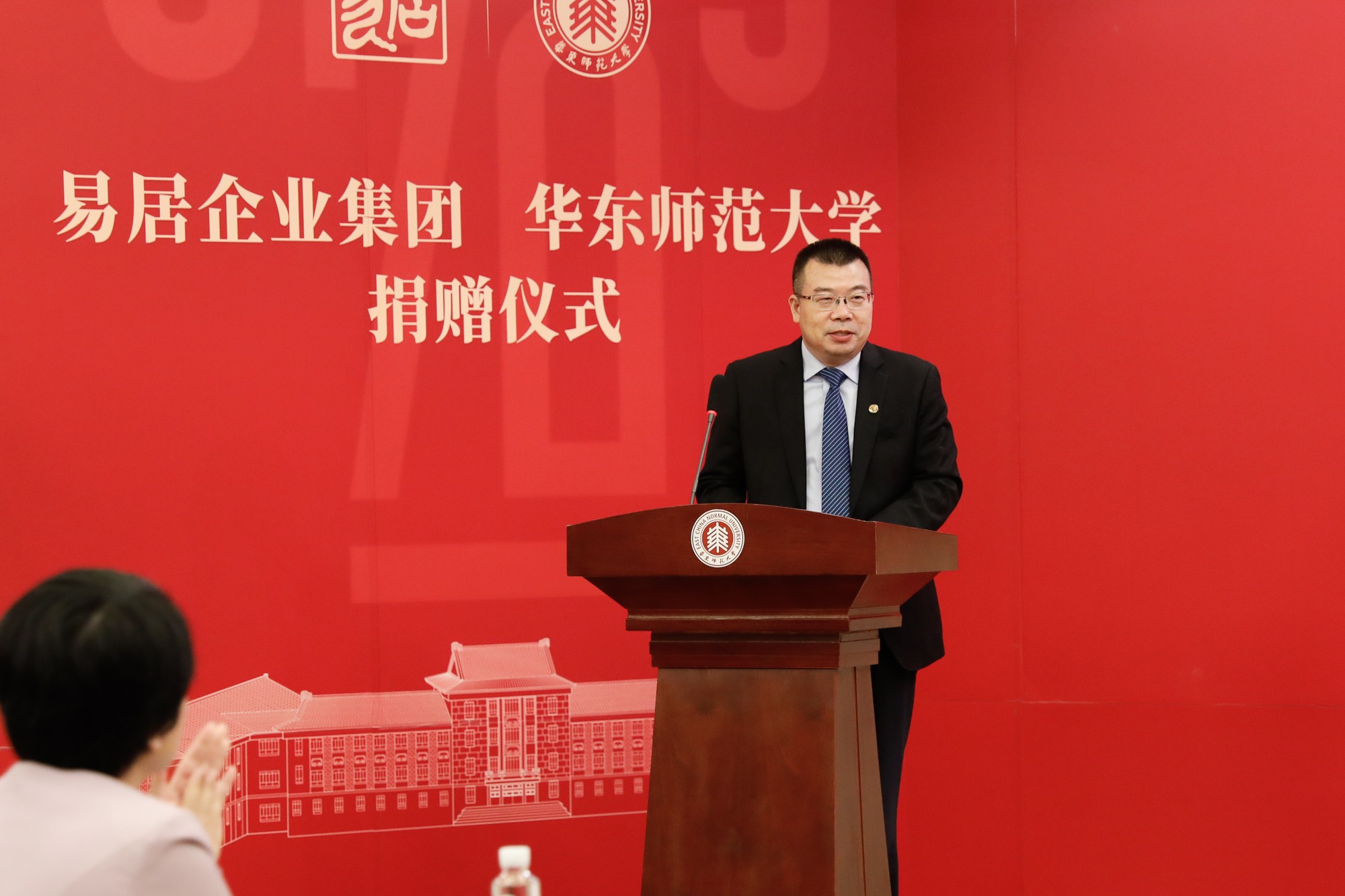 丁祖昱校友先后多次代表易居集团向学校捐赠,不断助力母校的一流大学建设。他在讲话中回忆了自己在华东师大度过的求学时光,表达了对母校、师长的感恩。他表示,易居将发挥企业优势,推动母校充分调动优质教育资源,建设职业教育领域具有卓越引领作用专业高地,致力为不动产企业、上下游产业链、政府等领域培养基于大数据、人工智能高新技术的高水平专业人才和技能人才,为国家职业教育发展作出更大的贡献。