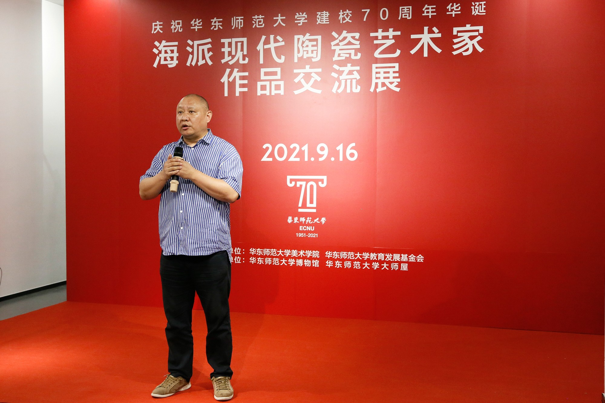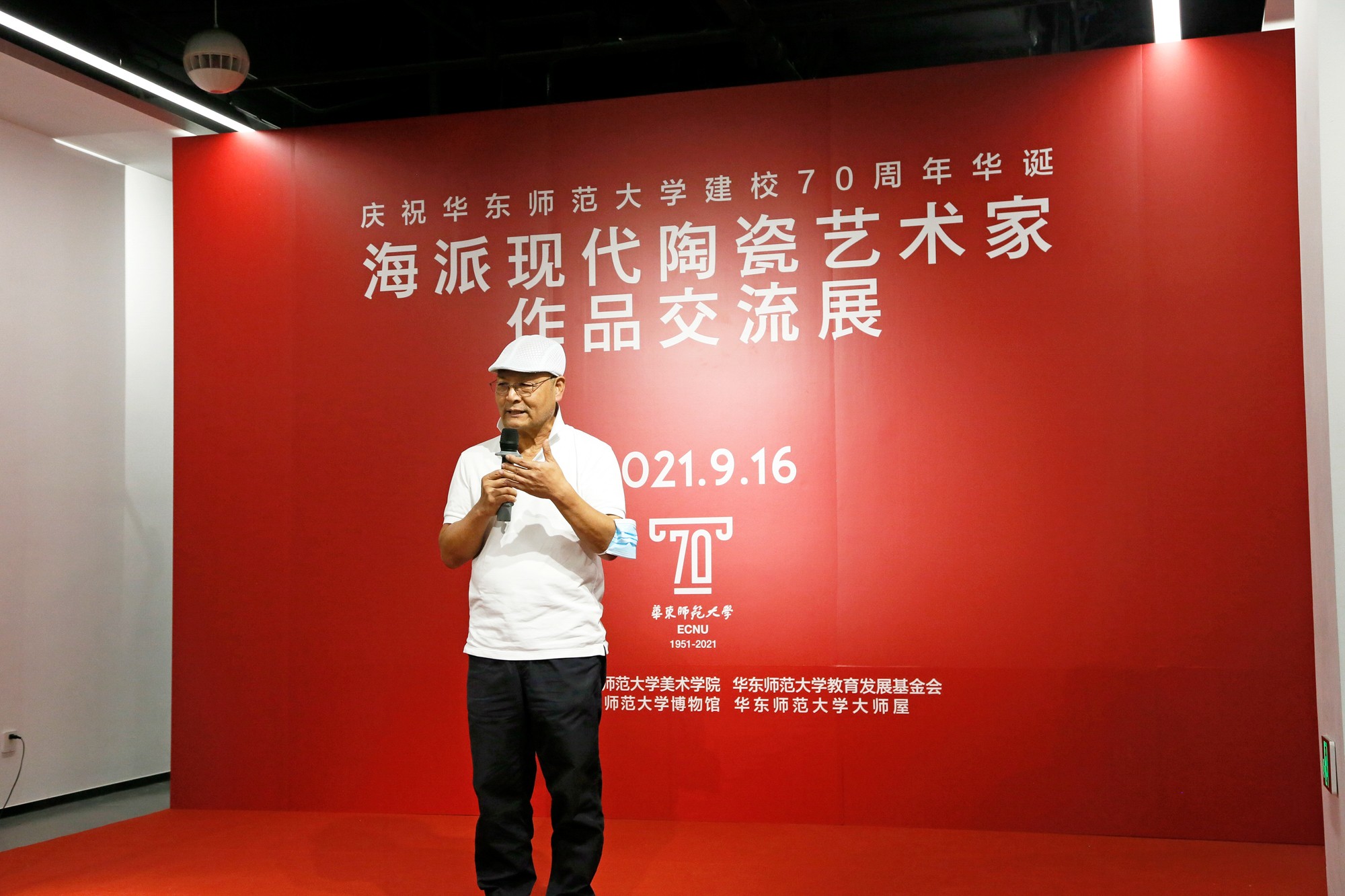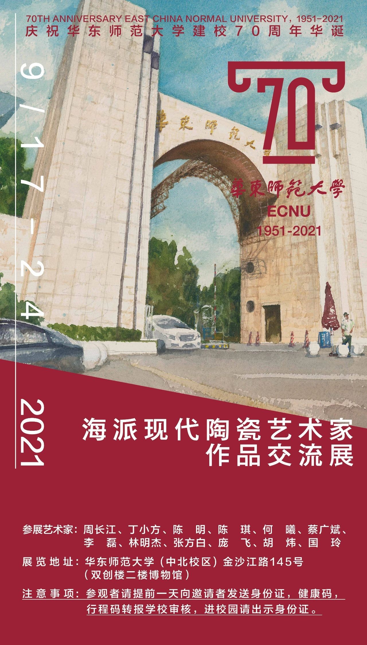 9月16日是华东师大70周年倒计时30天,“海派现代陶瓷艺术家作品交流展”于当日下午在华东师大博物馆开幕。展览共展出12位海派书画名家及5位华东师大美术学子共计70件瓷器艺术作品。展览由美术学院、教育发展基金会主办博物馆、大师屋支持。