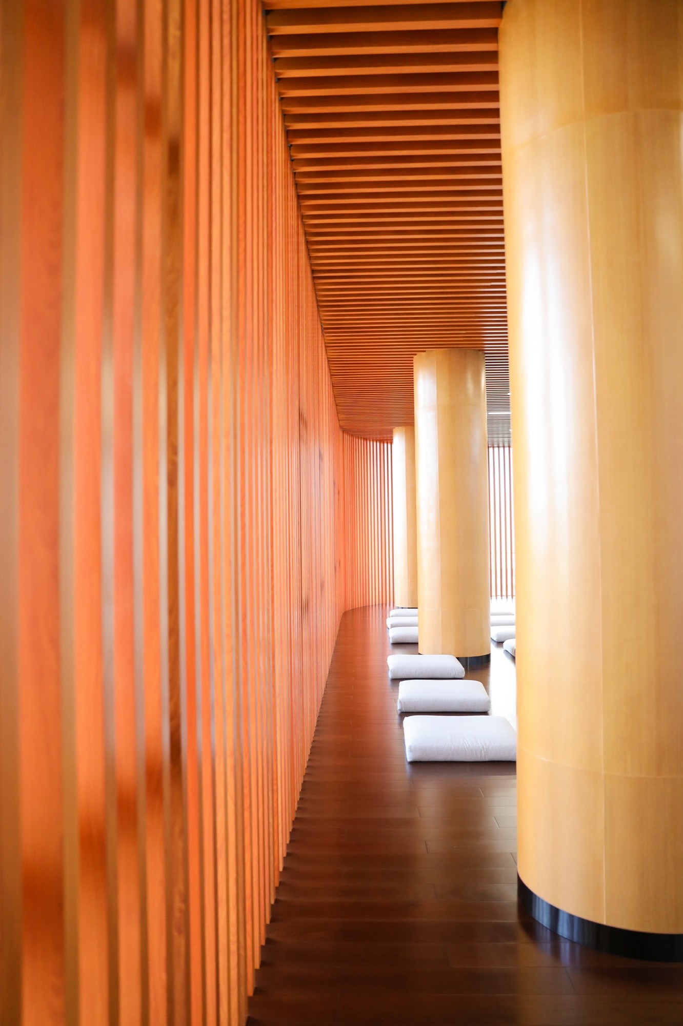 置身幸福研习空间,有种特别的空灵与清雅。约160多平方米的面积并不大,预计可容纳30-40人,却为师生在忙碌的生活中开辟了一方整理思绪、疗愈心灵的小天地。当阳光穿过木纹铝格栅洒在地面,形成光影的韵律感。墙面喷涂的海阔天空图案被柔和的光包裹着,远离喧嚣、舒缓身心、缓解压力、涤荡思维。