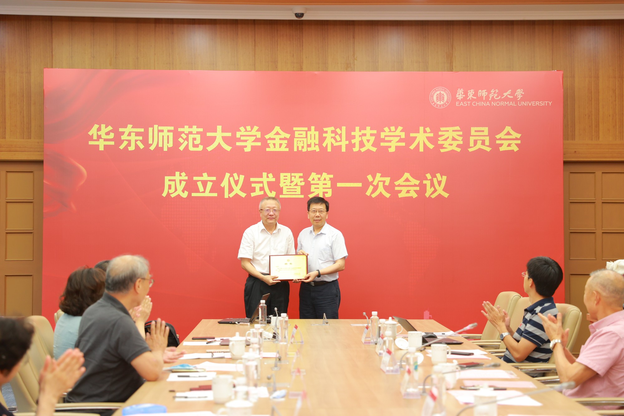 包括中国工程院院士柴洪峰在内的来自高校、金融机构及科研院所,在相关领域具有深厚学养、专业贡献和广泛影响的11位专家被聘为金融科技学术委员会委员,他们将为华东师大金融科技领域发展提供决策咨询与智力支持。钱旭红为到场的专家委员颁发聘书。