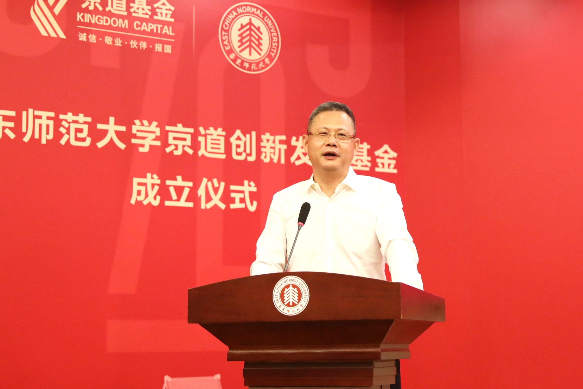 作为华东师大的校友,何红章先生时刻不忘感恩母校,多年来为推动华东师大的进步和发展尽心尽力。在讲话中,他通过对“传承与创新”“思考与行动”“缘分与感恩”三组关键词的解读,展现了一名企业家的强烈使命感。他表示,京道基金将持续聚焦中国产业转型升级的关键技术以及产业数字化领域,通过切实行动推进金融资本与产业深度融合,不断提升我国经济高质量发展能力。展望未来,京道基金承诺把报效祖国作为经营活动的出发点和落脚点,最大限度地发挥产融结合的社会效益,服务国家战略,增进民生福祉。