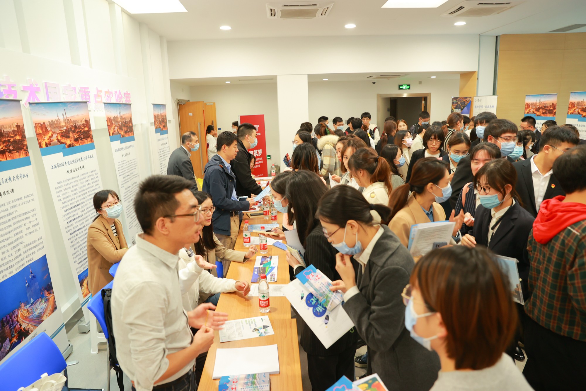 临港管委会党群工作部(人力资源处)副部长蒋静、徐汇区委组织部副部长申毅、普陀区委组织部副部长应征先后作选调生项目推介宣讲,展示了各区的区域发展特色、人才发挥平台,解读了选调生招录政策、培养体系等。