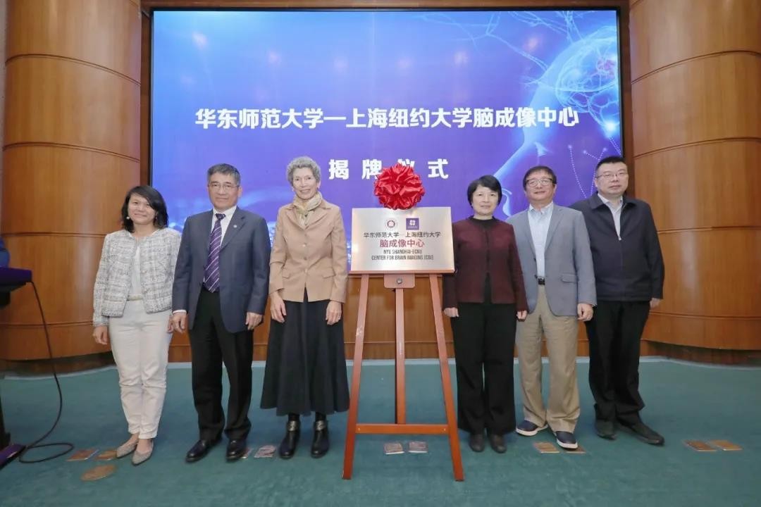 梅兵、孙真荣、蔡清,童世骏、衞周安(Joanna Waley-Cohen)、吕忠林为“永利皇宫登录官网-上海纽约大学脑成像中心”揭牌