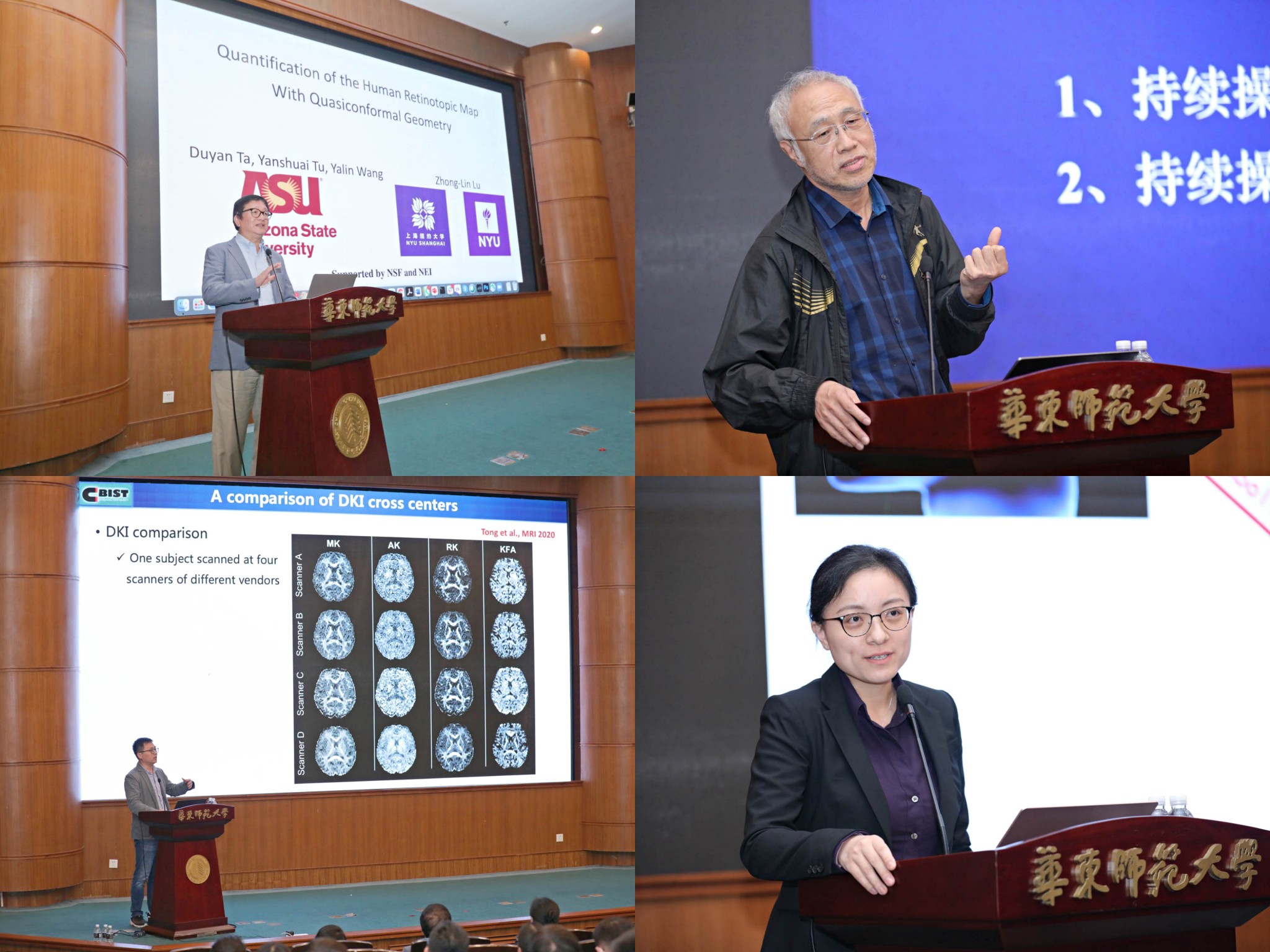 揭牌仪式后,本领域的多位重要专家学者进行了“儿童脑成像”专题学术研讨会。中国科学院自化研究所脑网络组研究中心主任、脑网络组北京市重点实验室主任蒋田仔教授与上海科技大学生物医学工程学院创始院长沈定刚教授首先作了大会主旨报告。