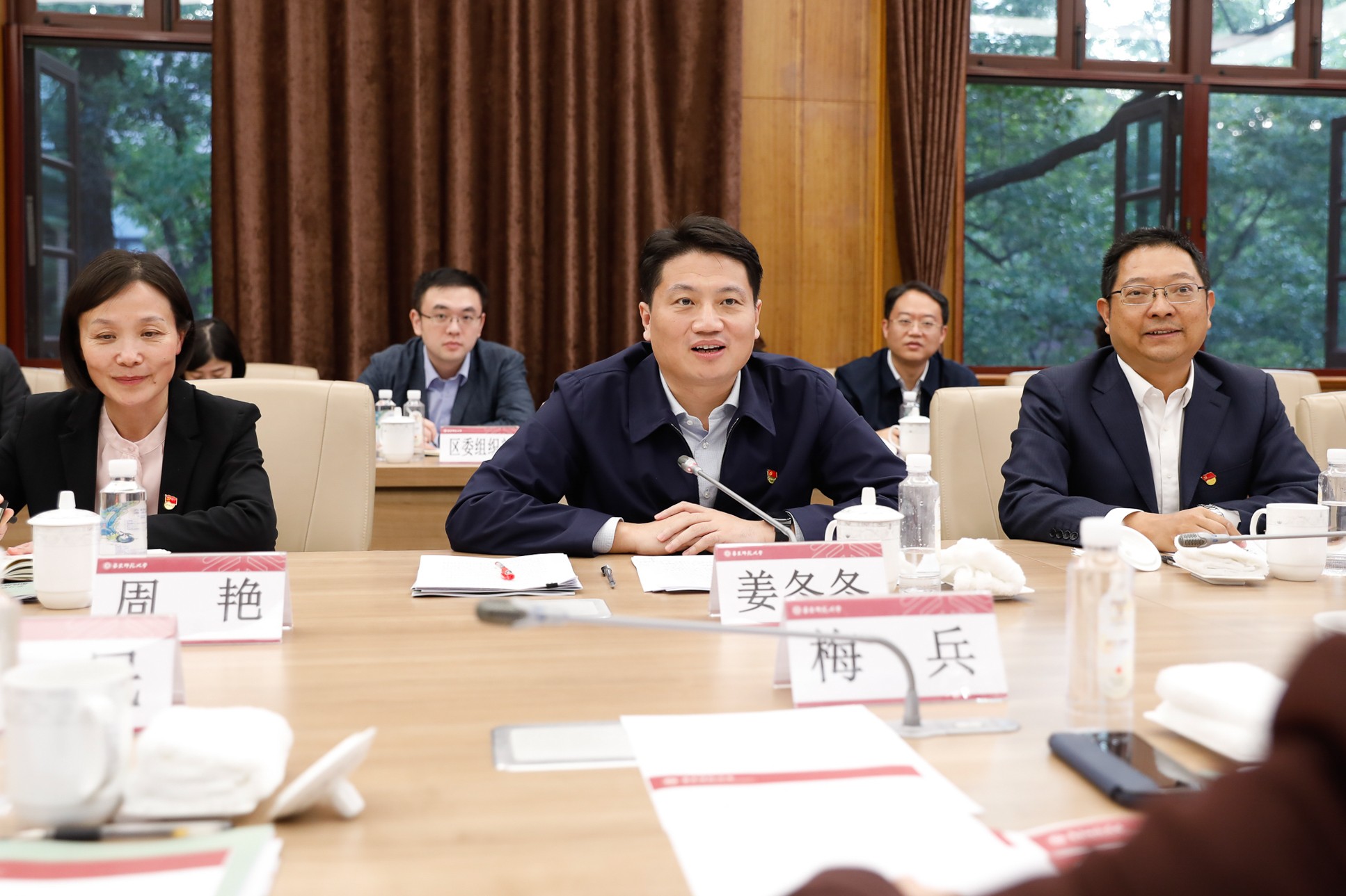 普陀区委书记姜冬冬,区委副书记、代区长肖文高,区委副书记周艳,区委常委、副区长姜爱锋,区委常委、宣传部部长刘东昌,区委常委、武装部部长刘云宏,区委常委、区纪委书记高路;华东师大党委书记梅兵,校长、党委副书记钱旭红,党委副书记朱民、曹友谊,党委常委、副校长孙真荣、周傲英、雷启立、顾红亮出席会议,校长助理吴瑞君、施国跃列席。