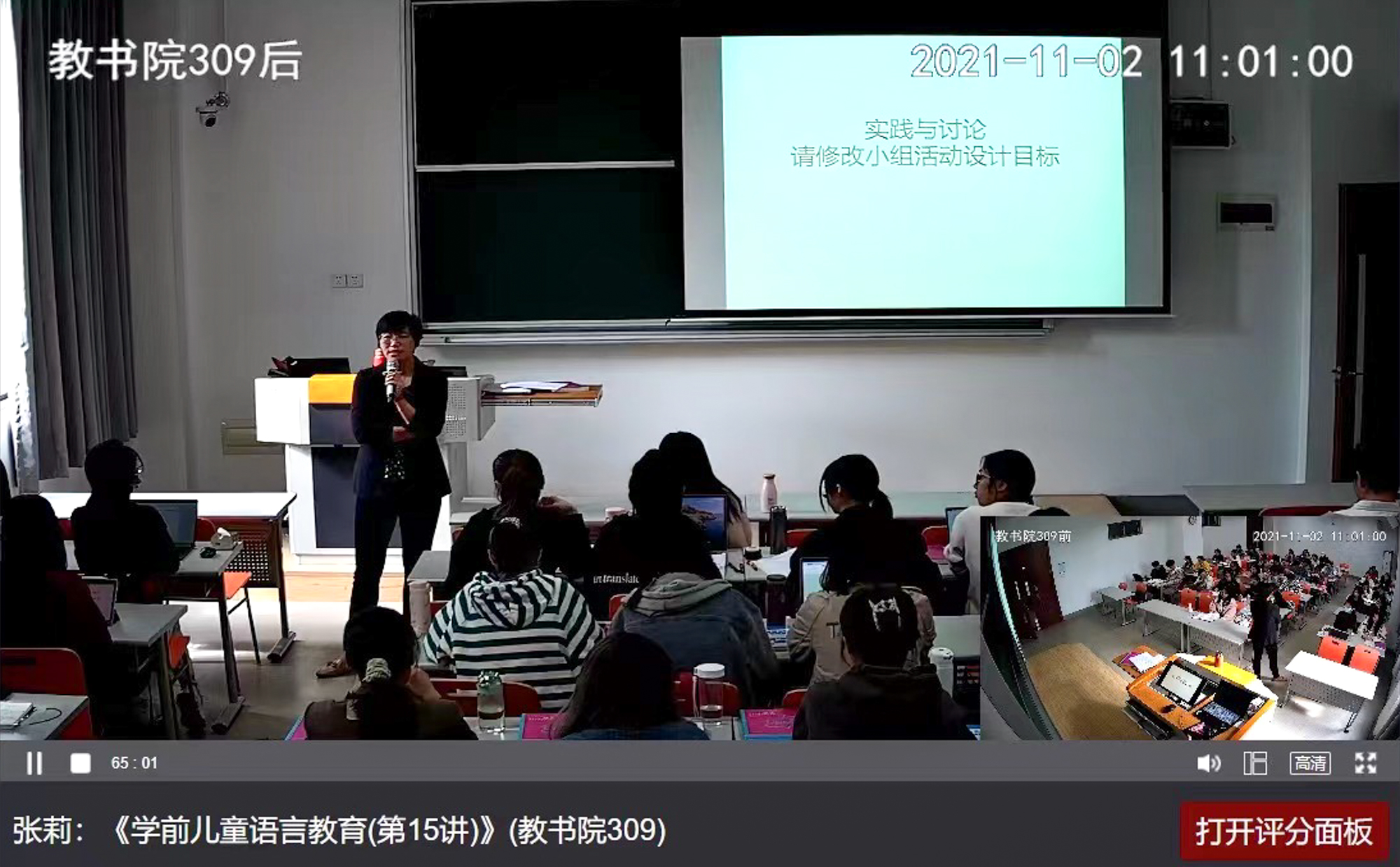 11月9日上午,专家组考察意见反馈会通过线上线下相结合的方式举行。专家组全体成员线上参会,华东师大副校长戴立益,教务处、党委学生(研究生)工作部、招生办公室等相关职能部门负责人,教育学部党政班子成员,学前教育学系负责人以及全体教师在校内集中参会。
