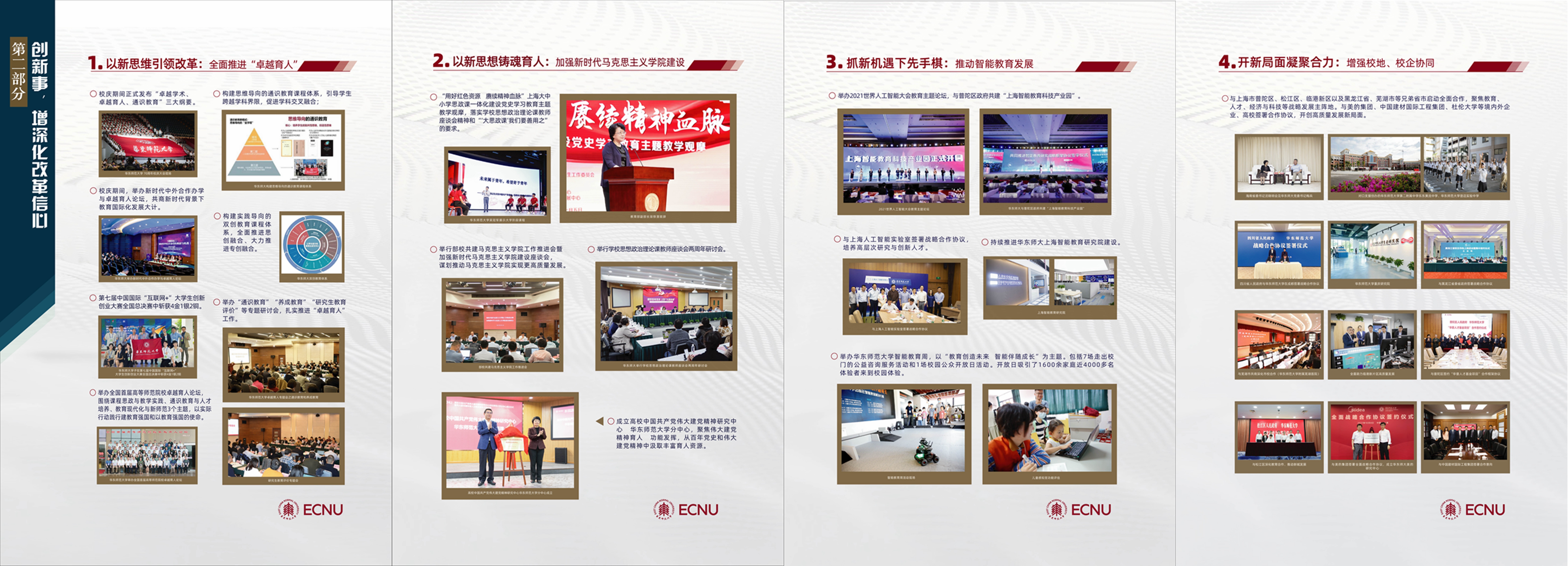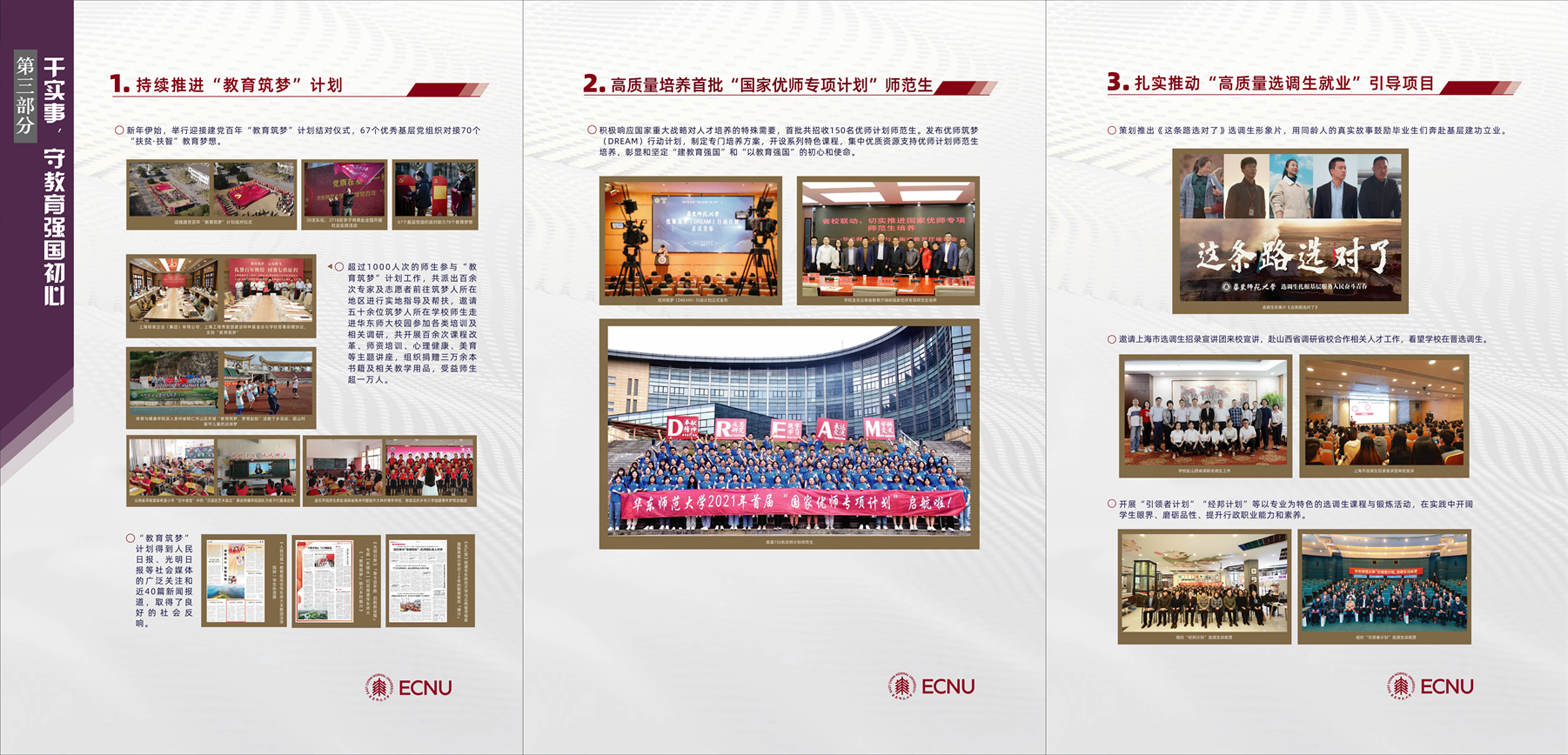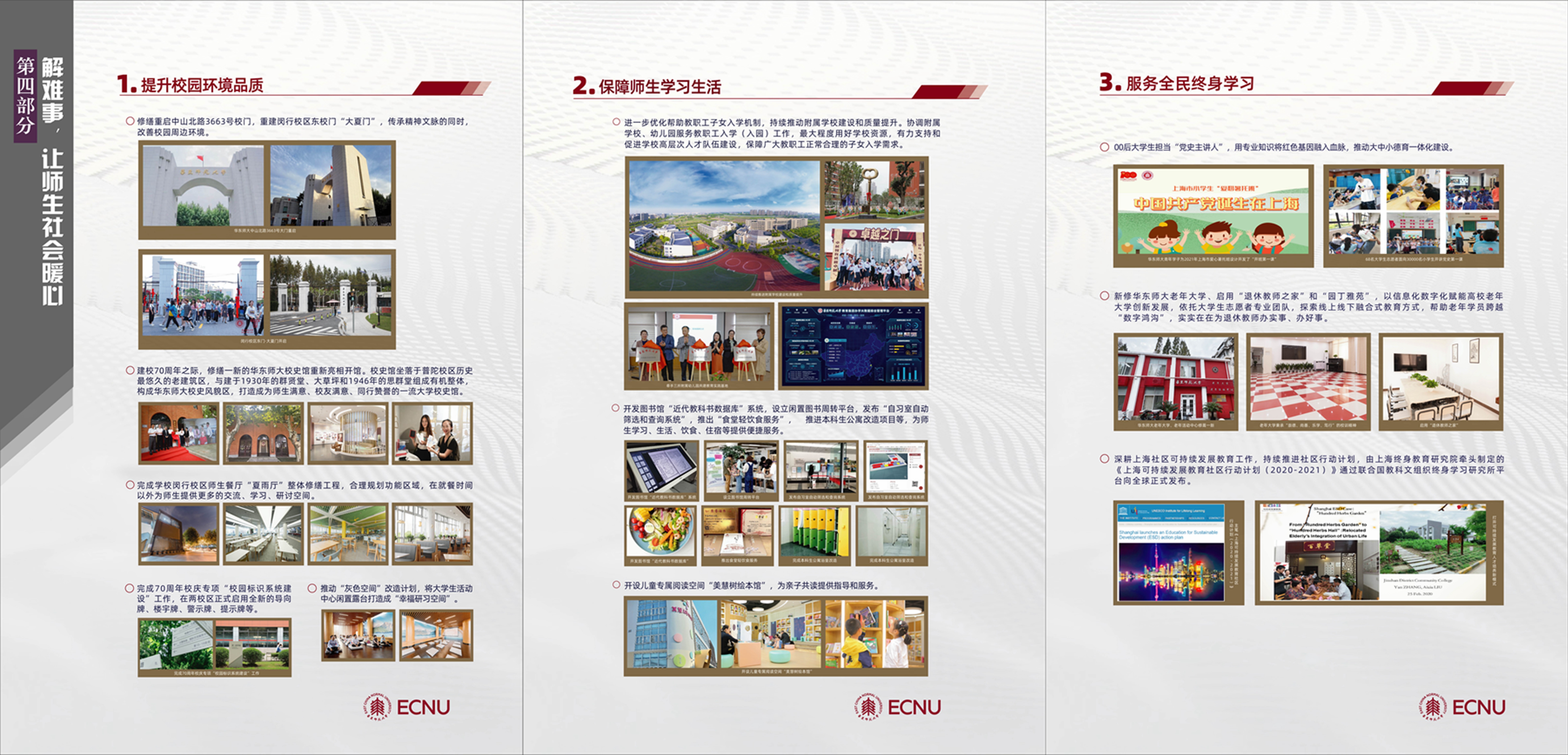 主题展通过“谋大事,攻国家战略核心”“创新事,增深化改革信心”“干实事,守教育强国初心”“解难事,让师生社会暖心”“长本事,聚卓越发展人心”五个单元,生动展现近一年来华东师大落实上级部署要求、结合学校实际,统筹谋划和系统推进“我为师生办实事”实践活动的思路、举措、成效。