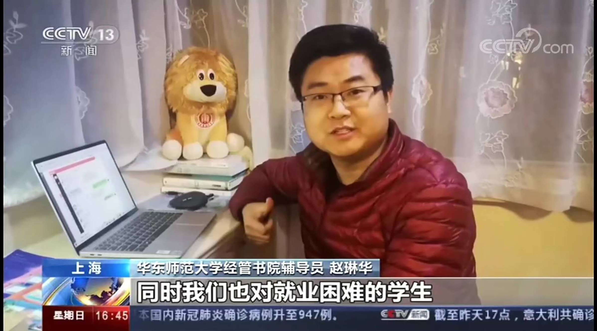 辅导员赵琳华是经管书院就业创业办公室主任,赵琳华生涯工作室也是华东师大首批特色辅导员工作室之一。疫情期间,他及时调整2020年书院春季招聘会的方案,把招聘会搬到了线上。自2月10日起,通过微信、邮件等形式,经过紧锣密鼓的沟通协调,他主动联系了50余家优质企业。仅一周时间,原定的线下春季招聘会成功调整为空中双选会,21日春季空中双选会平台正式上线。截至28日,已有93家企业报名,涉及证券、银行、保险、房地产、通信、软件、教育、互联网等多个领域,包括中建三局、中建六局等国有企业及知名教育培训机构等。3月11日,双选会将正式开放,学生可在空中双选会平台投递简历,主动向心仪的单位发起在线语音、视频聊天,用人单位可以直接在线面试,双方可以达成初步意向。在双选会正式开始前,他还将结合当前国家“稳就业”的政策支持及就业指导工作经验,为毕业生提供线上就业指导,鼓励毕业生赴国家重大工程、重大项目、重要领域就业,受到了央视新闻直播间《战疫情》节目的特别报道。