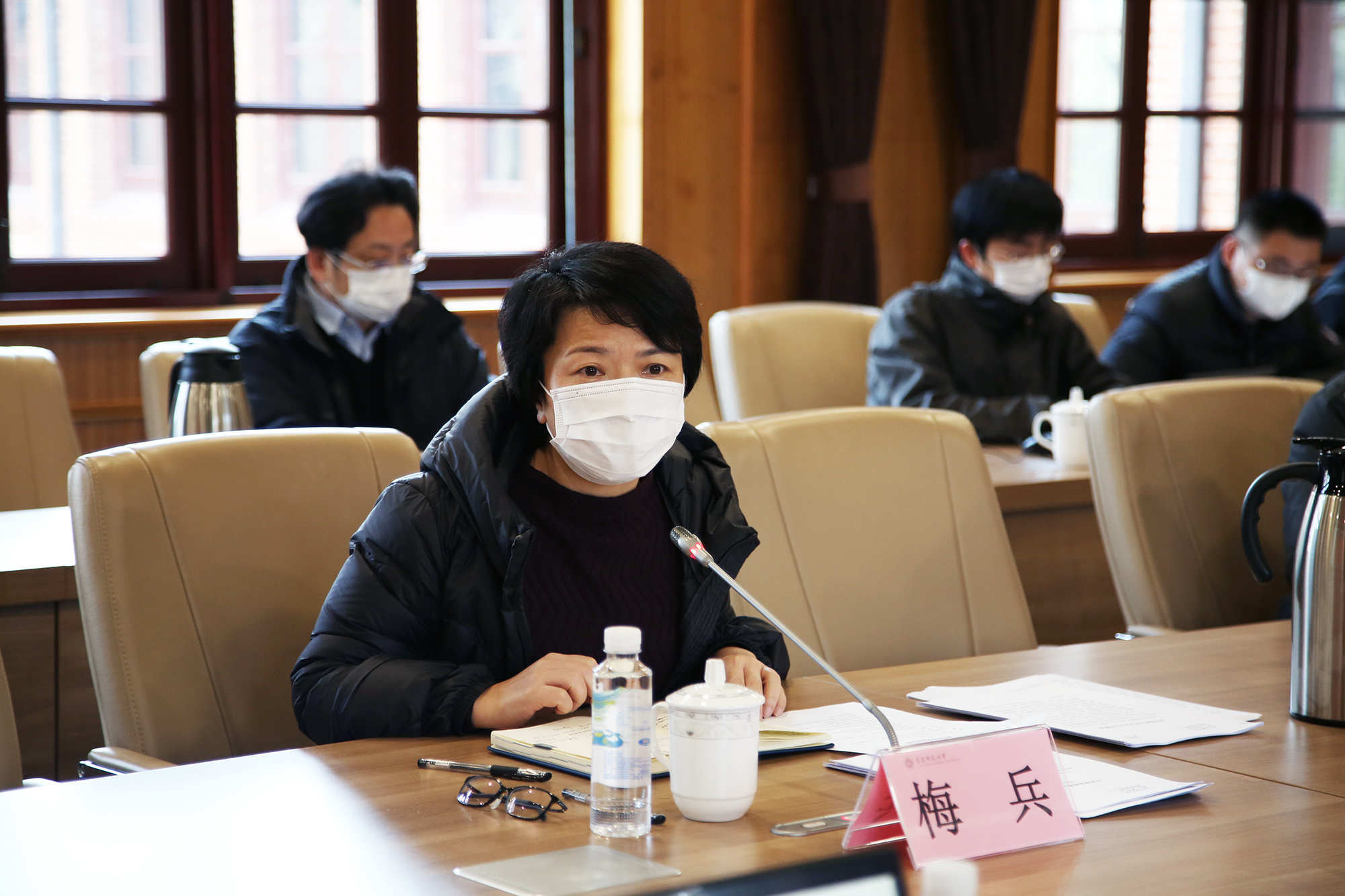 最后,梅兵对全体师生员工在疫情非常时期共克时艰表示衷心感谢,她对学校寒假期间的疫情防控工作做了简明的梳理与回顾,并归结为一句话“守好自己的门,管好自己的人”,高度肯定了广大师生结合自身专业特点向社会提供公益服务资源的行动,显示了华东师大作为高水平大学所具有的社会担当和社会服务精神。梅兵指出,从下周开始,学校要双轨并进,一手抓疫情防控,一手抓复工和线上教学。今年工作由于疫情影响任务会更加繁重。梅兵表示,这些繁重工作要依托于学校党委的领导和全体党委委员集体的智慧,她希望党委委员在推进各项工作开展时不但要有基于本职岗位的责任意识,同时也要有大局意识,要站在学校层面,围绕学校中心工作来展开思考和筹划,共同推动学校发展登上一个更新更高的台阶。