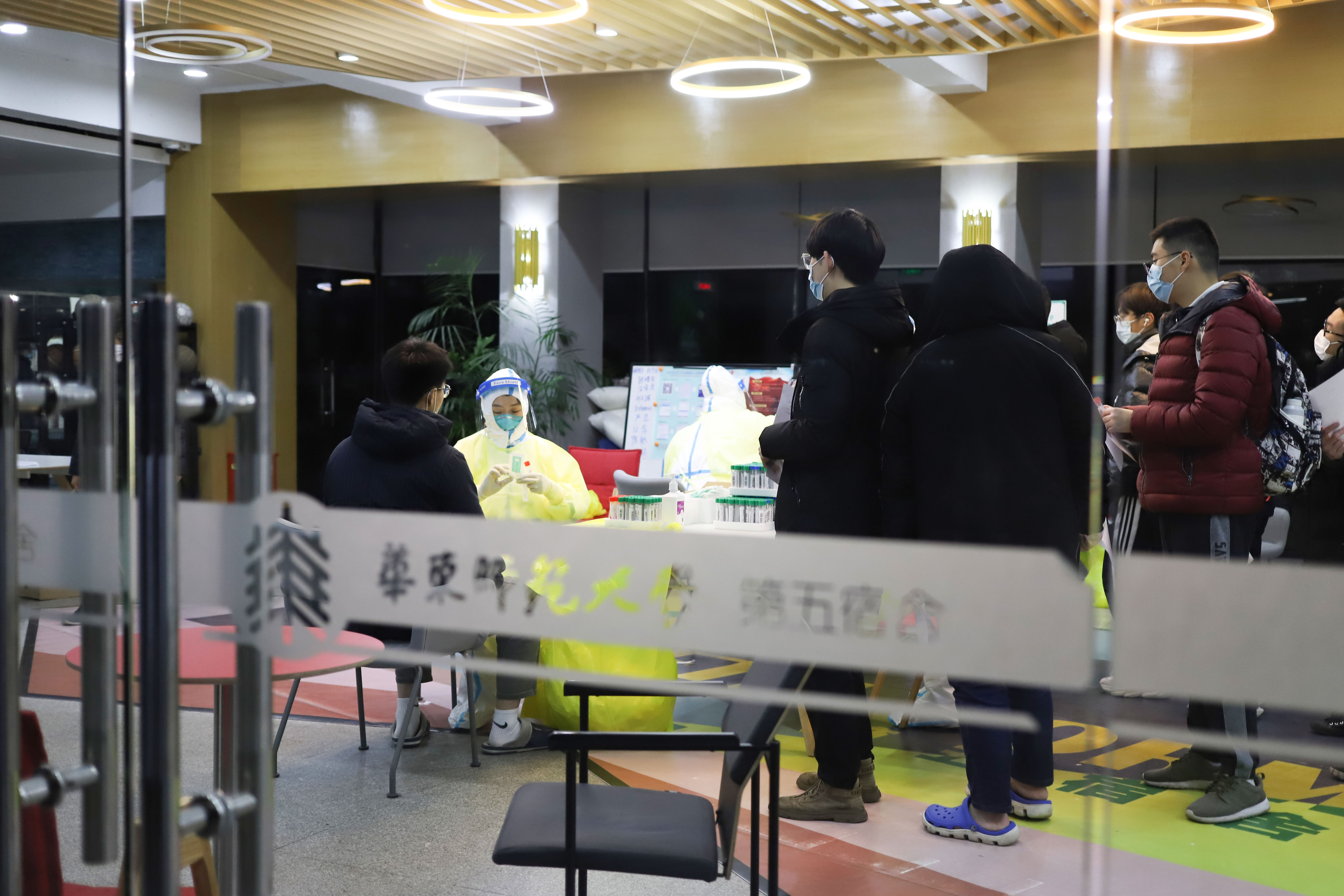寒假以来,上海不少地方在接受疫情防控排查协查。因疫情排查需要,1月14日起,永利皇宫登录官网普陀校区第五宿舍实行2天48小时封闭管理,533名寒假留校学生和宿管人员当晚接受核酸检测等排查工作。