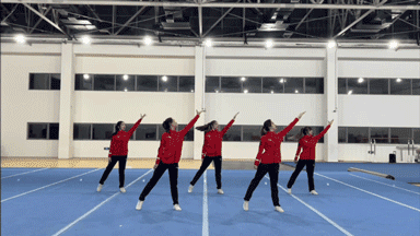 春节期间,华东师大闵行校区体育馆健美操房里,师生们依旧热火朝天地排练、录制,相关视频在中国体操协会公众号、央视频发布和推广。