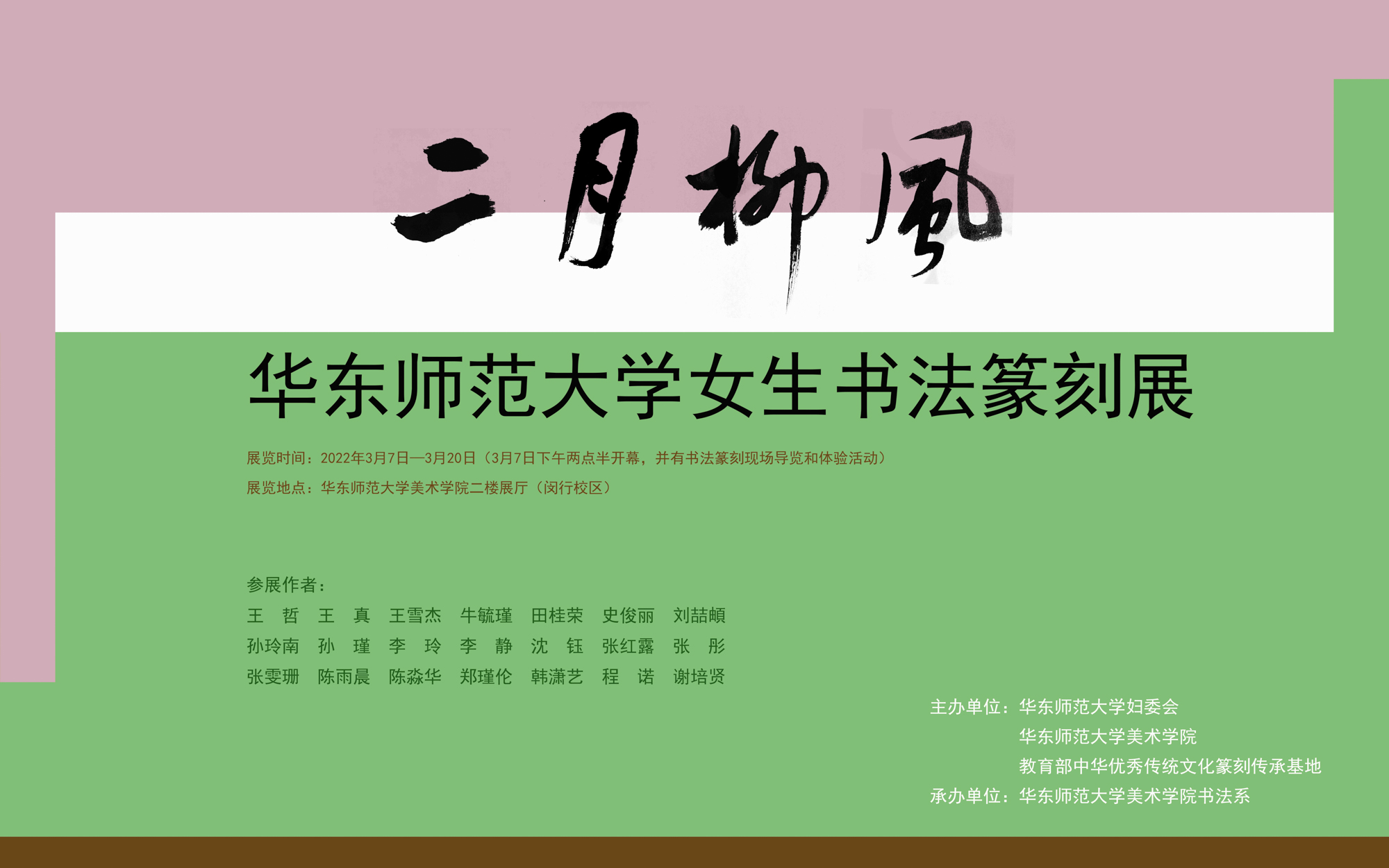 “二月柳风——永利皇宫登录官网女生书法篆刻展”是2019年华东师大美院主办的“彤管风雅——女生书法展”的升级版,已成为该校女生书法篆刻展的重要品牌。