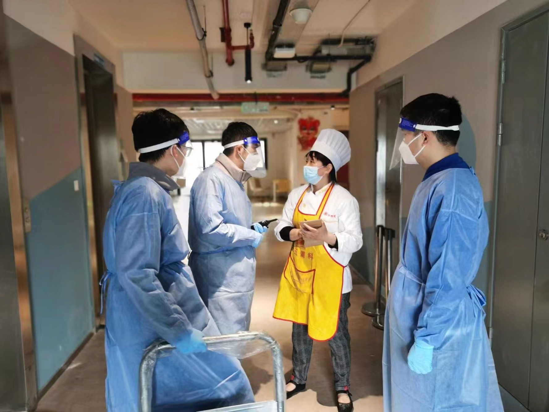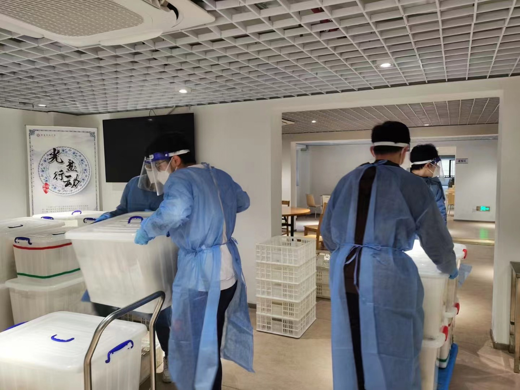 华东师大防疫志愿者们身着蓝色马甲或防护服,被大家亲切称作“蓝朋友”。自华东师大闭环管理以来,“蓝朋友”成为了防控管理的重要力量。