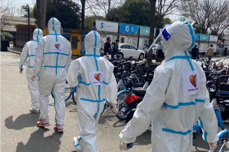 自3月13日学校进入疫情防控闭环管理开始,团学骨干一直就是校园防疫的先锋部队,一支支行动力强的团学队伍冲在疫情防控的第一线……历史系孙帜同学是团学队伍中的“紧急接单员”,他的口号是“一旦接单,风雨无阻”,除了上课,无论何时,他随时在线,24小时开机,凡是交给他的任务,无一不保质保量、争分夺秒完成;生态与环境科学学院2021级环境学系硕士研究生团支部团员吴潇宇,是这次闭环管理中闵行校区研究生公寓志愿者负责人,他表示“在这次防疫志愿工作中,化身‘蓝朋友’‘蓝马甲’的团学骨干志愿者们每天随叫随到、任劳任怨,克服重重困难一同维护核酸检测的秩序、为同学取送应急药品与卫生用品、运输电脑等急需品等等,为能在打赢学校疫情防控阻击战中贡献一份青春力量,我不禁被志愿者们的温暖与担当所感动,感受到大家的勇敢与无畏,也感受到‘爱在华师大’!”