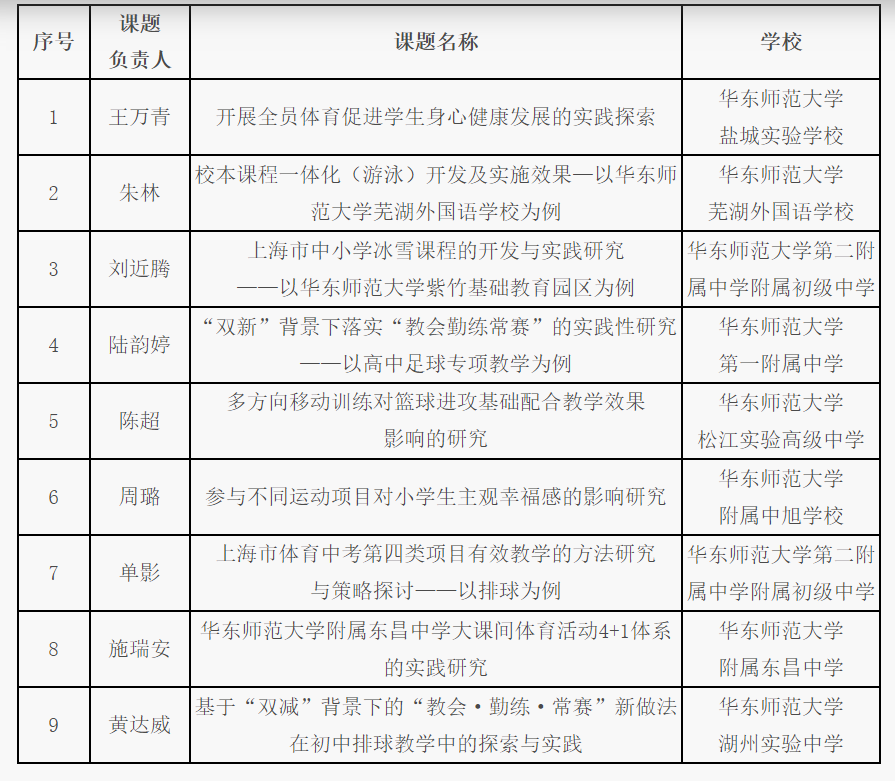 2021-2022年度基础教育学科教研联盟体育学科校本教研课题立项名单