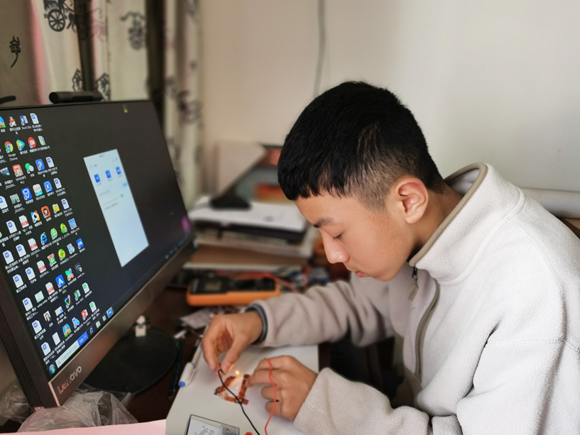 参加创意营的永利皇宫登录官网昆明实验学校何科毅同学正体会构建电路的乐趣