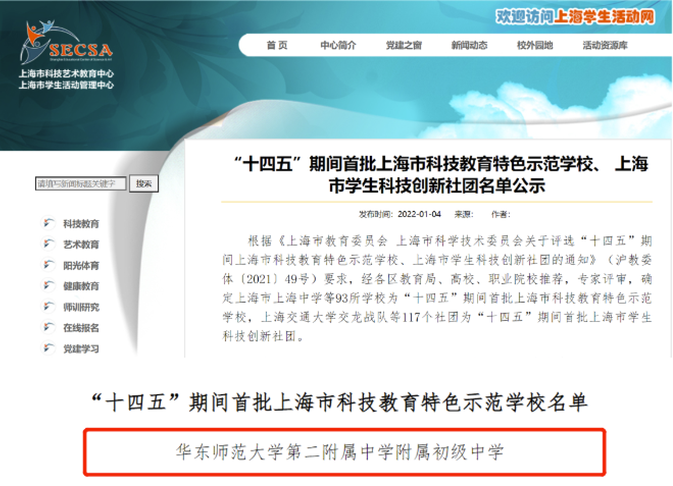 学校被评为“十四五”期间首批上海市科技教育特色示范校