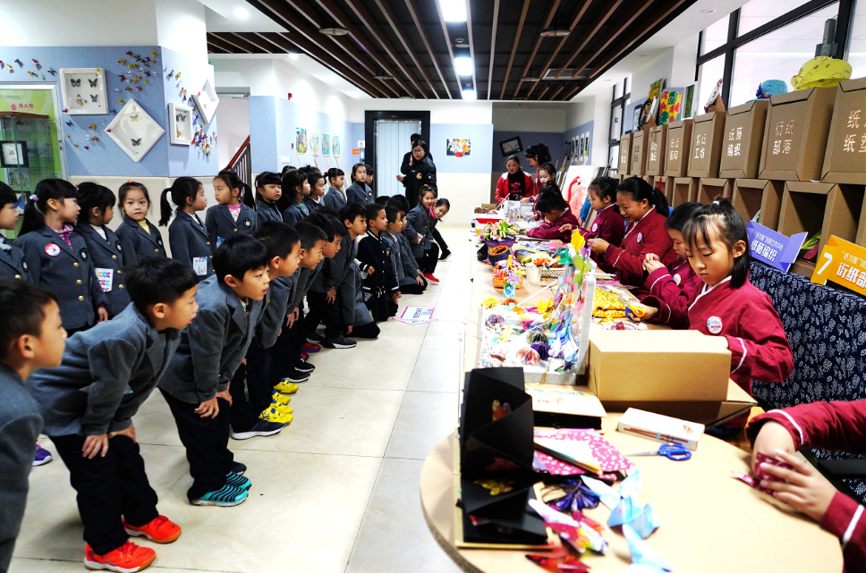 “以纸为媒化蛹成蝶”活动,九大工坊的学员接待来自校内外师生、家长,专家等2000多人现场互动体验活动