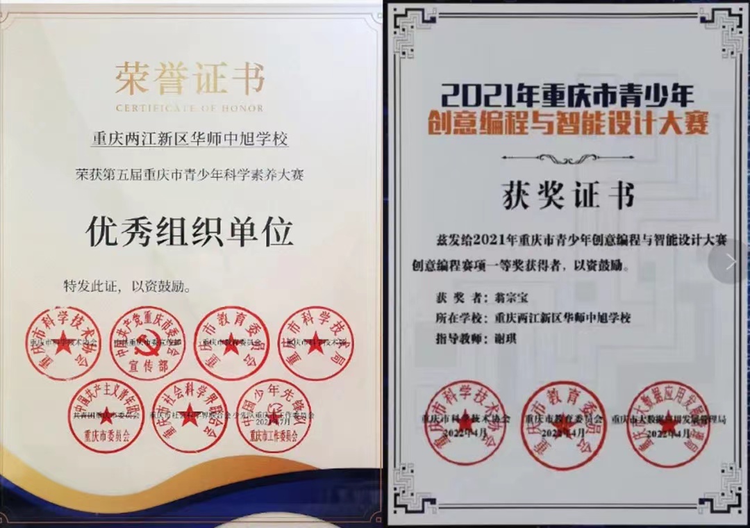 学生在全国学生信息素养提升实践活动中获重庆选拔赛一等奖