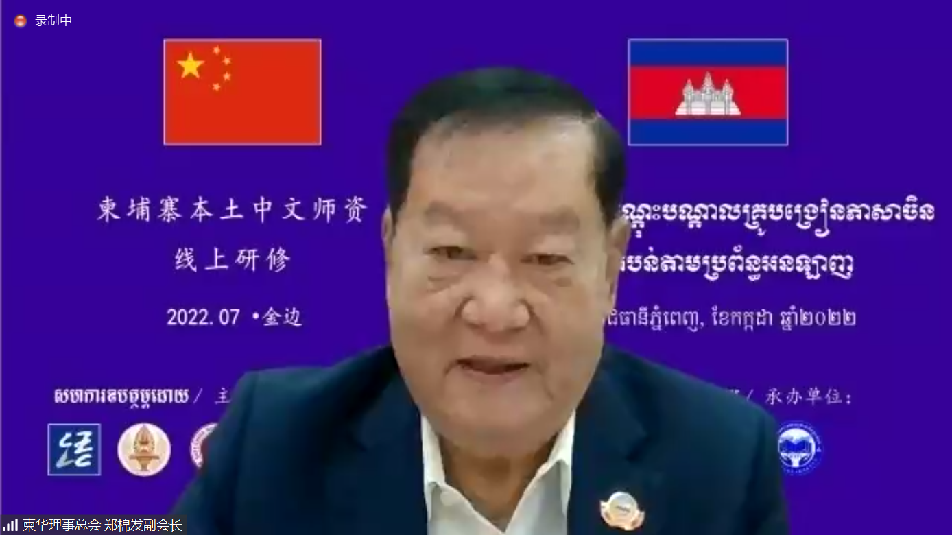 7月19日,2022年柬埔寨本土中文师资线上研修项目开班仪式在线举行。中国驻柬埔寨大使馆公使衔参赞常健、中国教育部中外语言交流合作中心党委副书记宋永波、永利皇宫登录官网顾红亮副校长、柬华理事总会常务副会长郑棉发、柬埔寨皇家科学院院长宋独出席开班仪式并致辞。柬埔寨皇家科学院孔子学院、国立马德望大学孔子学院、柬华理工大学孔子学院、金边皇家大学“DHY汉语中心”、端华学校、民生学校、中华学校等柬埔寨各大中文教育机构的负责人,全柬200余名本土中文教师以及华东师大国汉基地的老师们共同参加了本次开班仪式。