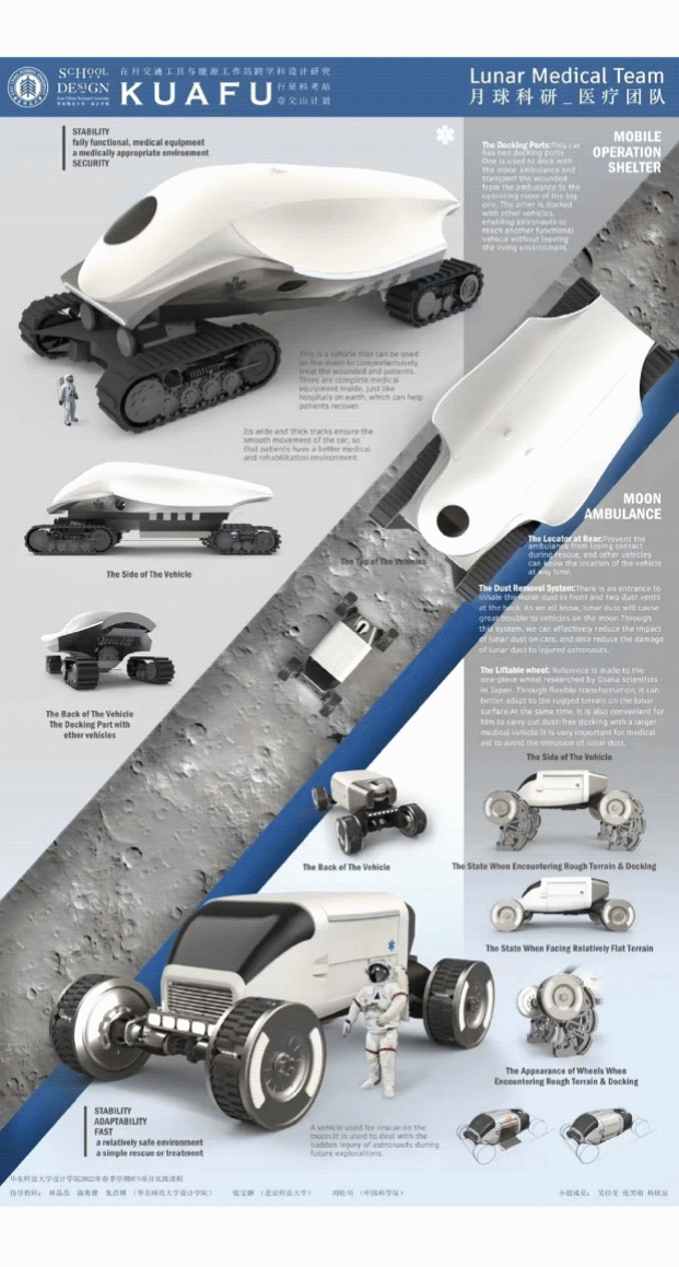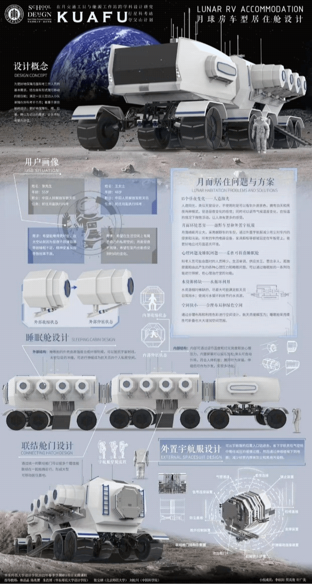 本次两个课题组的成果,呈现了设计的多样性与研究的丰富性,广大师生尝试了多个具有创新性的想法与技术,为未来月球旅行与探索提供了非常有意义的畅想与设计参考。