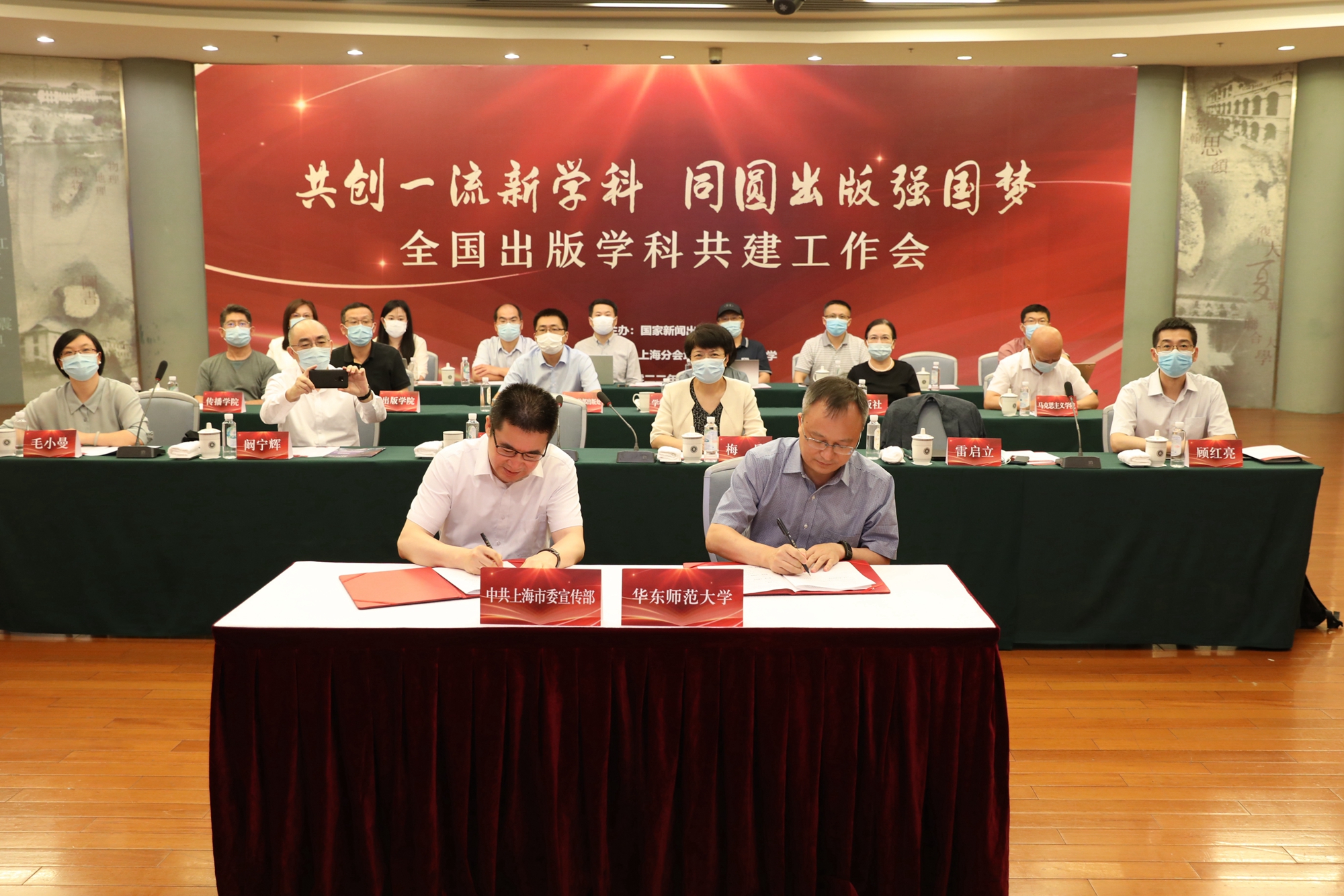中共上海市委宣传部副部长、上海市新闻出版局(版权局)局长徐炯和永利皇宫登录官网副校长雷启立作为共建双方代表签署合作协议