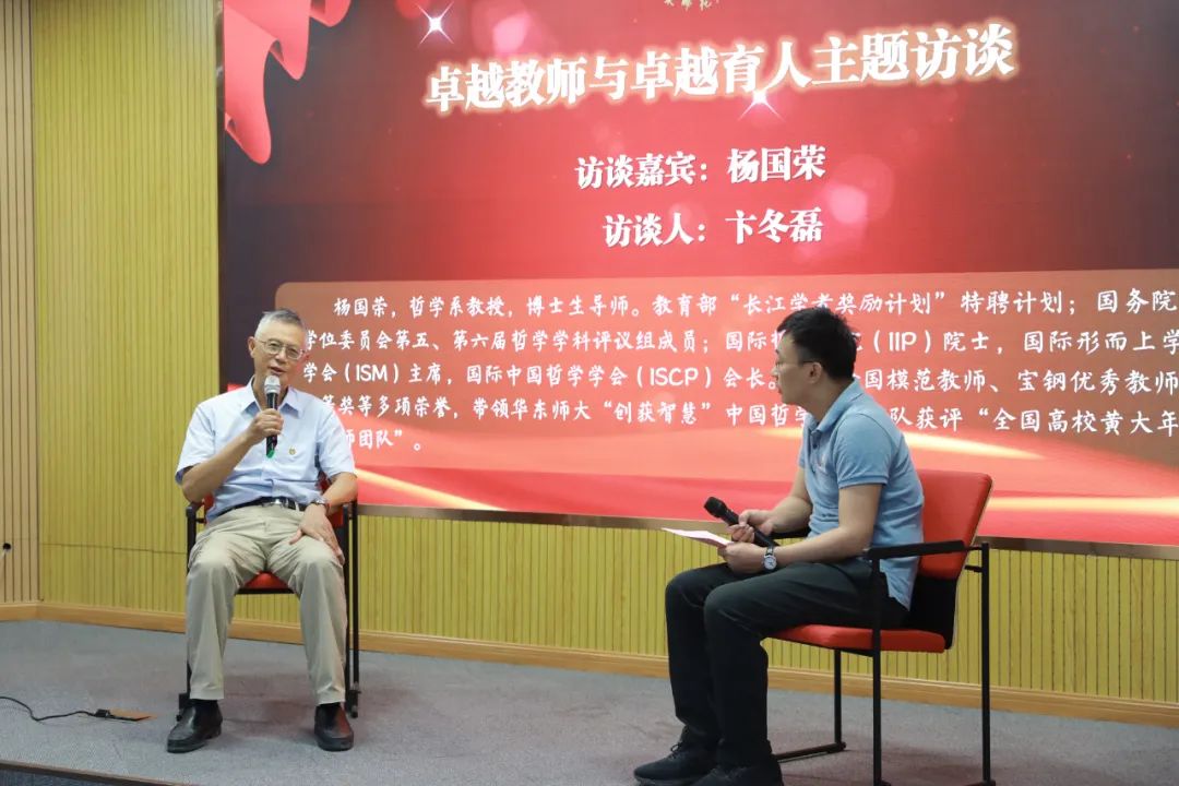访谈中,杨国荣回顾了自身的从教历程,以辩证视角剖析了 “人师”与“经师”的关系,并对“青年教师如何站稳讲台、实现卓越育人?”“如何在学术上取得突破,提升学术引领力与贡献度?”“如何学会与人合作、组建研究团队?”“如何处理教学、科研、家庭等各方面的压力?”等进行了详细解答。他强调“学无新旧也,无中西也,无有用无用也”,青年教师需要具有开放视野与批判精神,在不断积累的基础上,进行创造性思考。