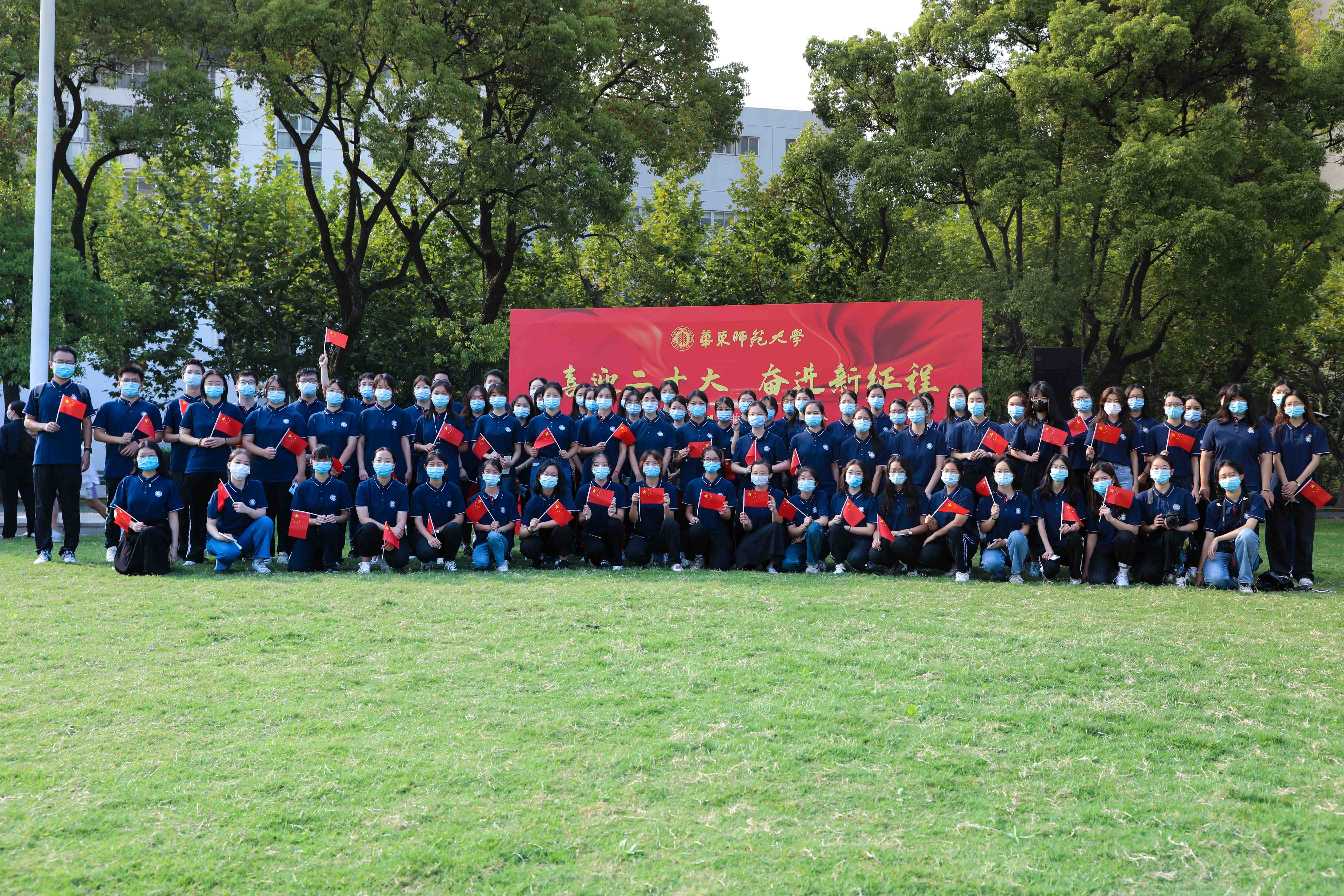 喜迎二十大,以青年之声,传播正能量,让党的思想理论走进校园、走进社区,强化青年的责任与担当。升国旗后,华东师大“新时代宣讲团”出征仪式举行,校党委常委、副校长顾红亮为“新时代宣讲团”授旗。