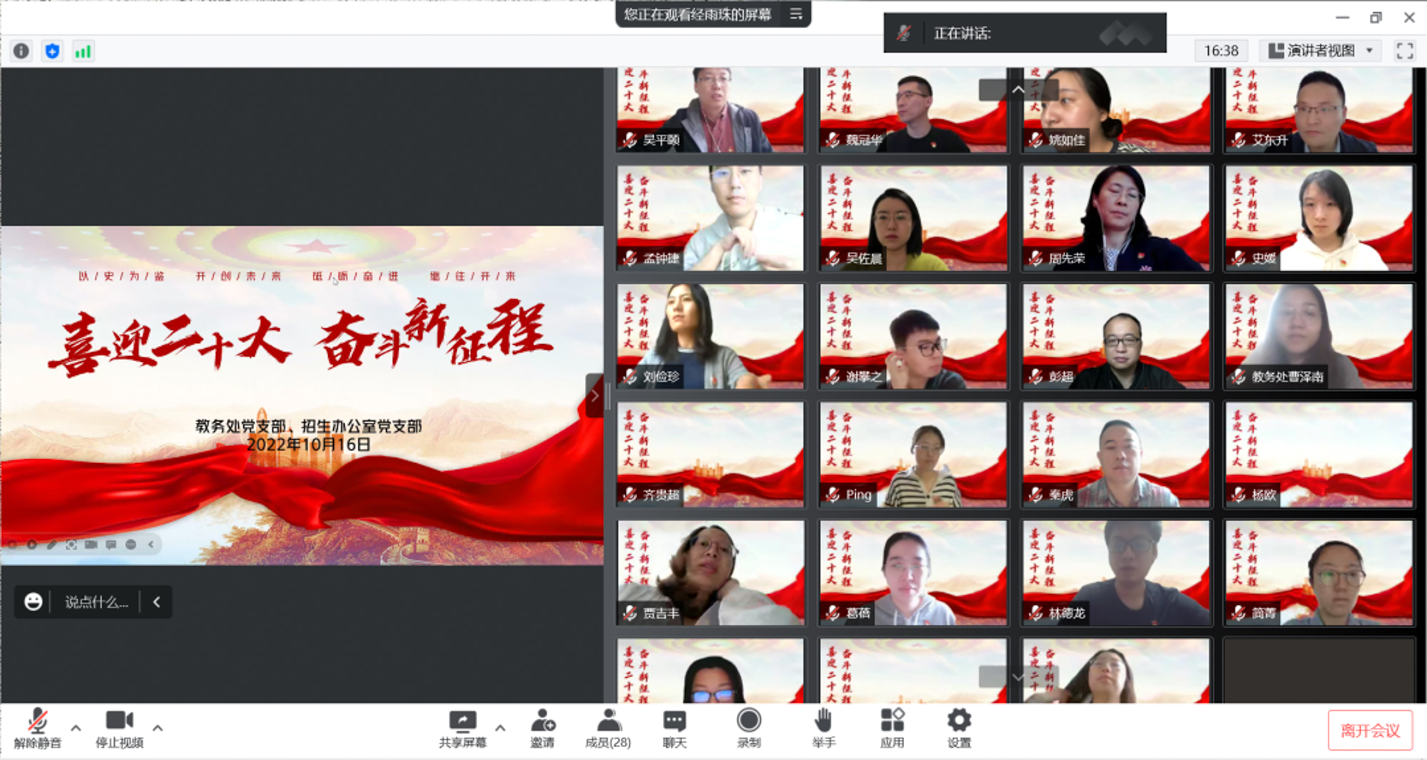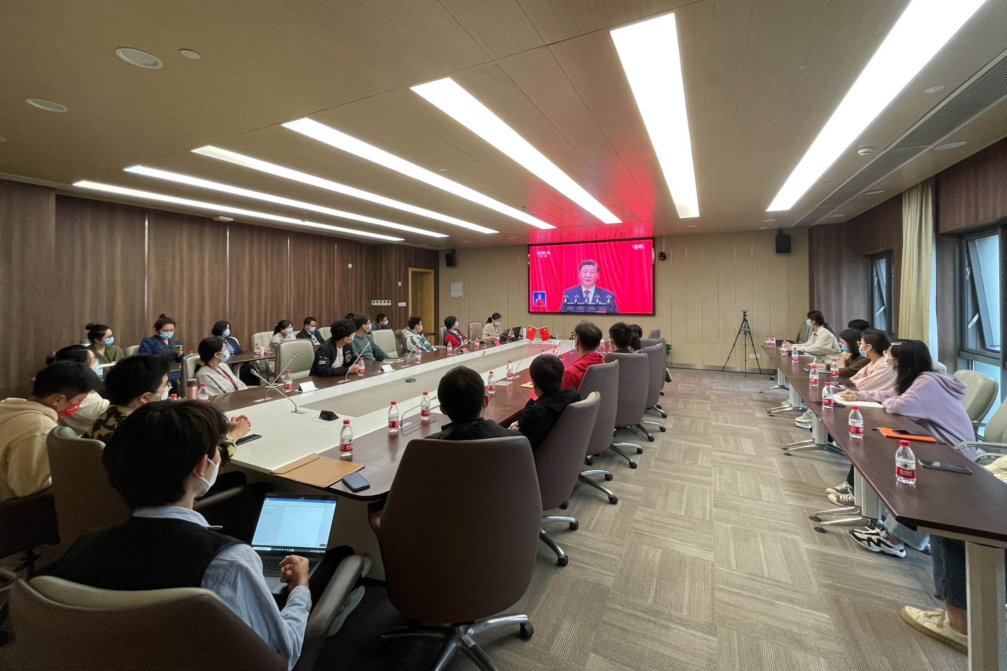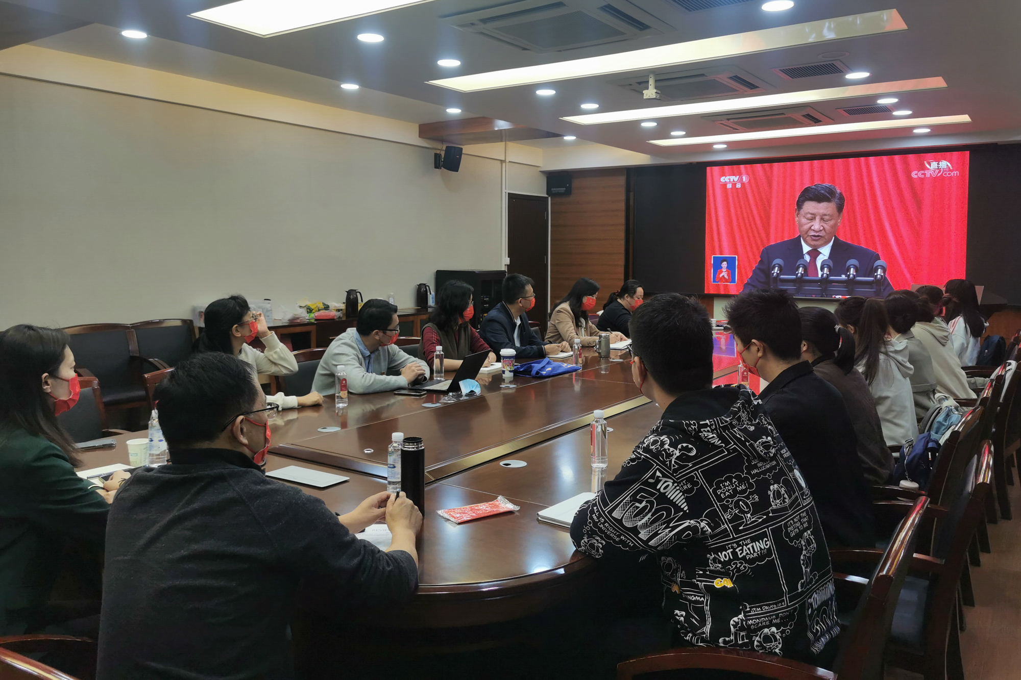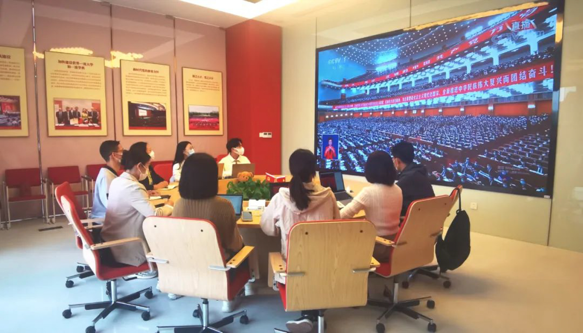 永利皇宫登录官网党委中心组成员共同收看二十大开幕会直播,并在会后第一时间举行学习扩大会,交流思考体会,深入研讨如何结合教育系统特点和学校工作实际,将学习贯彻党的二十大精神切实落到推动学校各项事业发展的实际中。