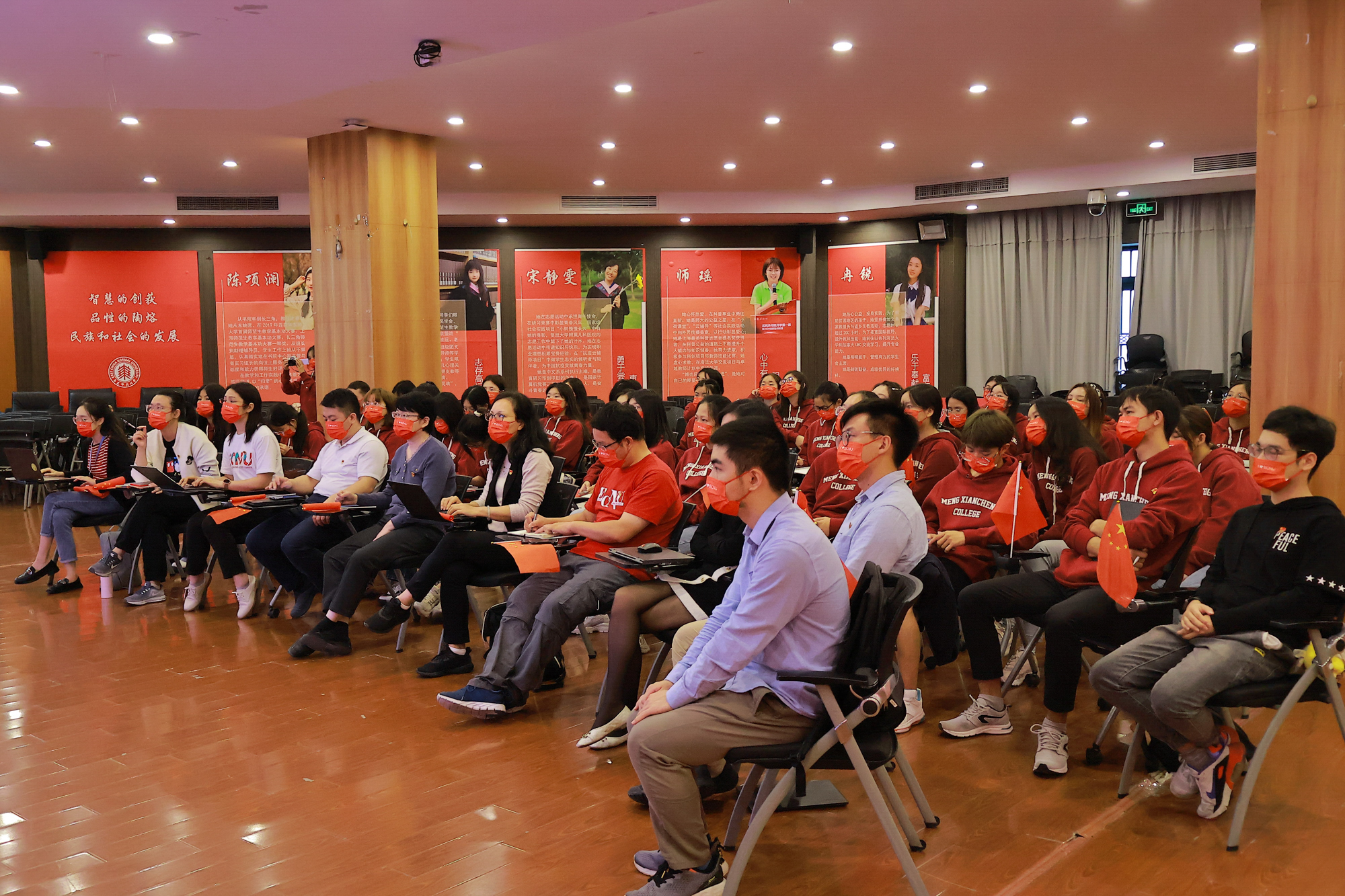 在郑州一中实习2019级物理学(师范)专业李宜阳同学,组织高二学生集体观看党的二十大开幕式