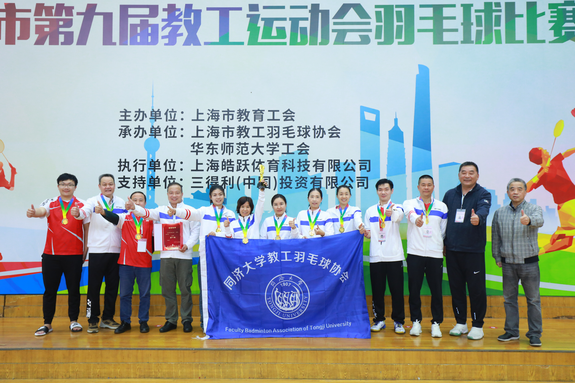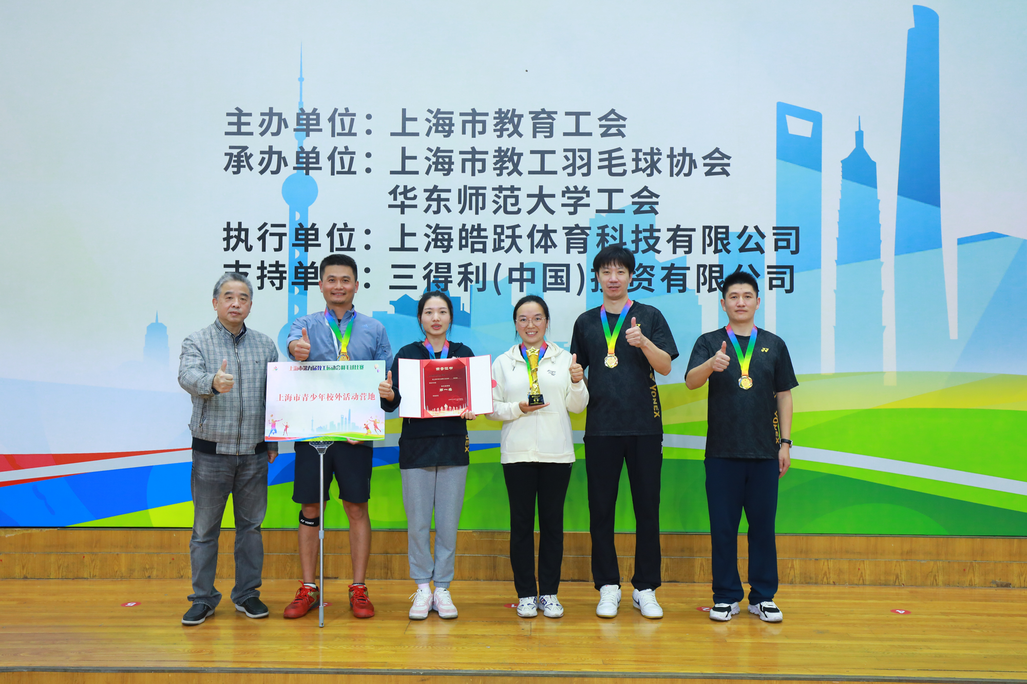 在颁奖仪式上,上海市教育工会副主席陶文捷,上海教工羽毛球协会会长、华东师大工会常务副主席王平,上海市教育工会宣教文体部顾问顾红以及到场的组委会成员、部分高校、区教育工会主席等共同为各组别的冠、亚、季军以及第四至第八名的获奖团队颁奖。