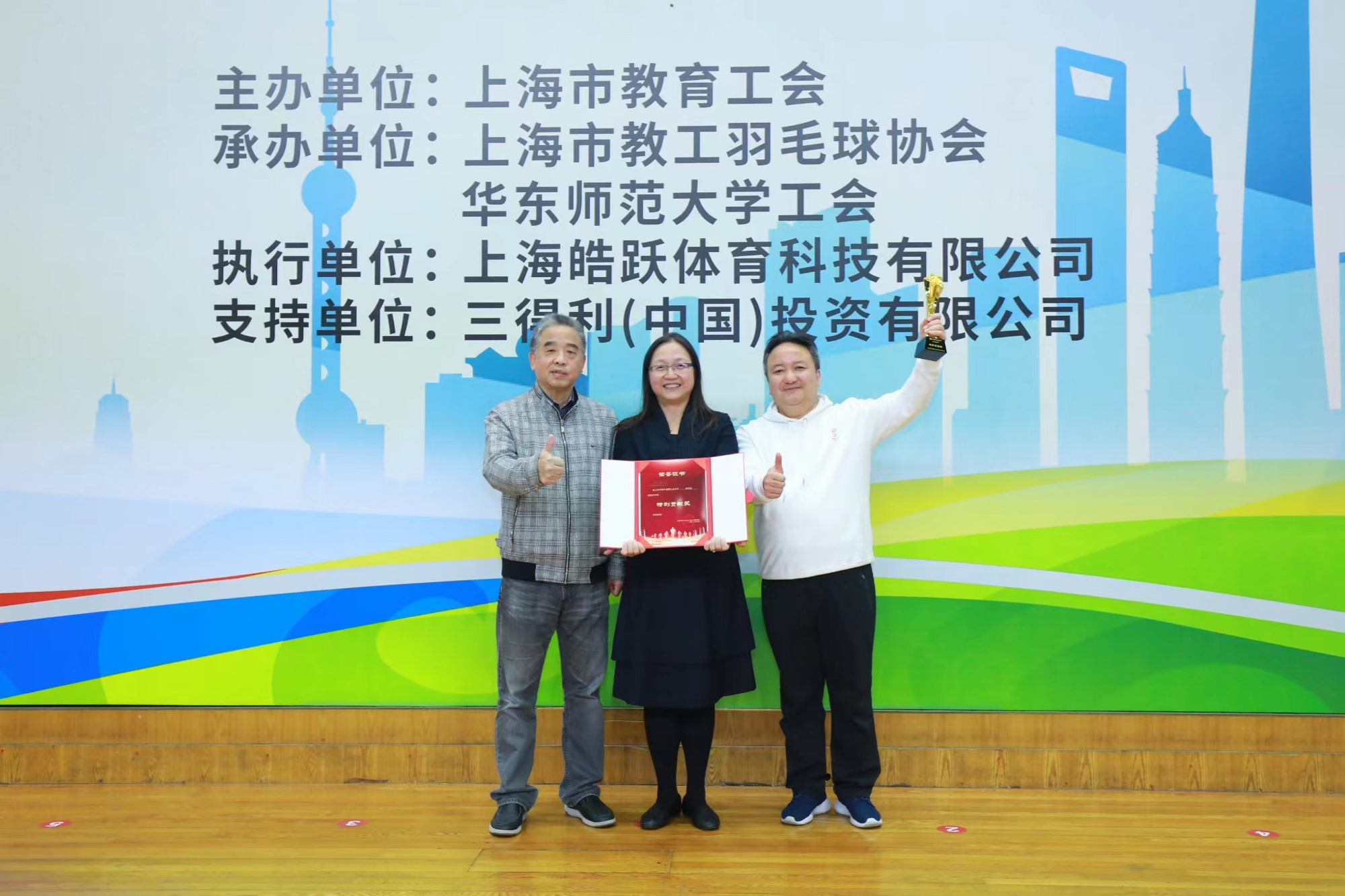 闭幕式上,上海市第九届教工运动会组委会副主任陶文捷为承办此次羽毛球比赛的华东师大工会授予“特别贡献奖”,以表彰华东师大学工会高水平承办市九届教工运动会羽毛球比赛的辛勤付出。