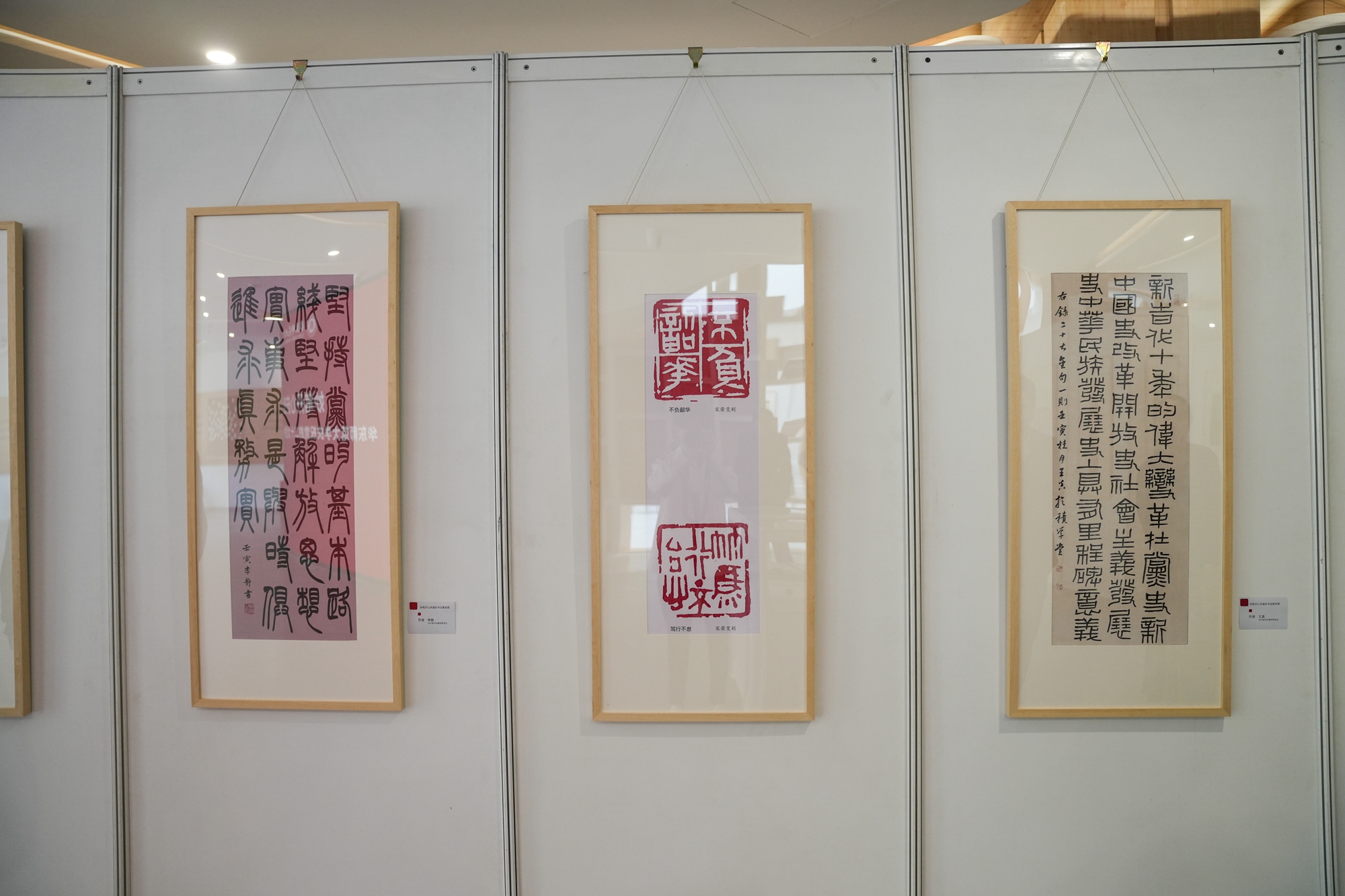 此次展出的26件书法作品和42方篆刻作品,记录了习近平总书记的讲话用典, 既是对中华优秀传统文化的致敬与传承,也是学校师生学习党的二十大精神体会感悟的真切呈现。
