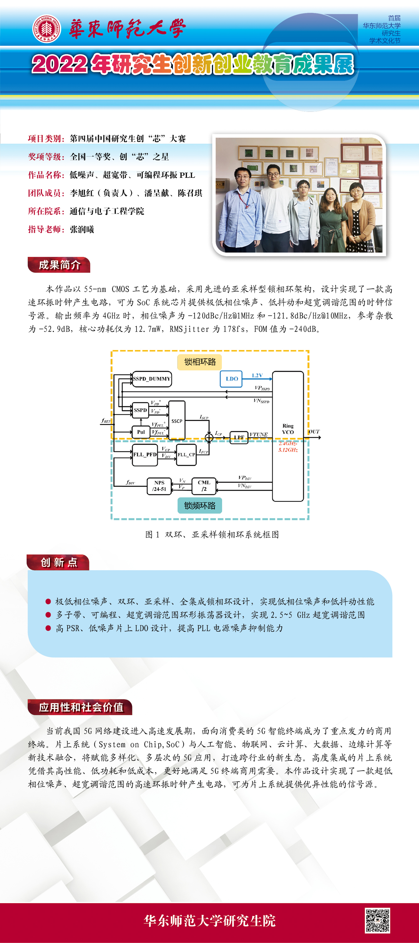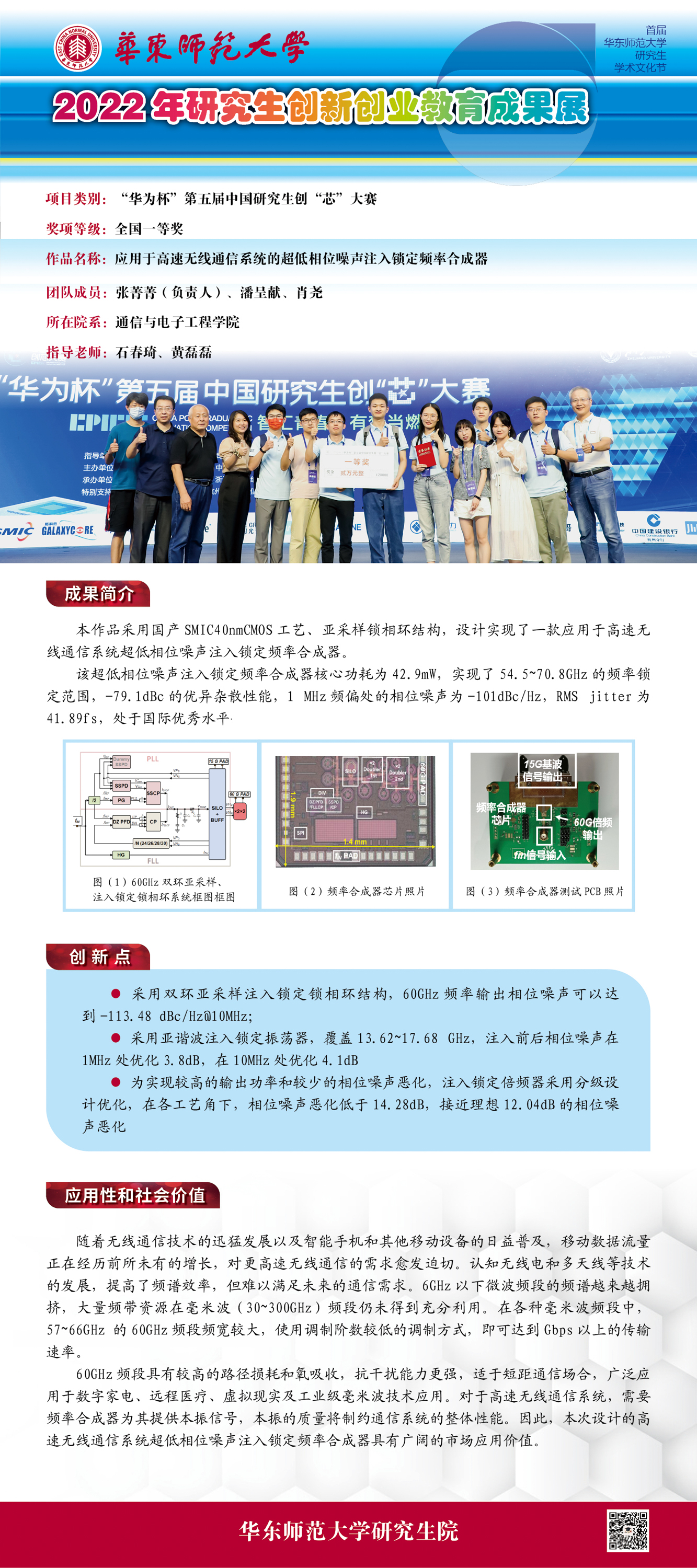 作品名称:应用于高速无线通信系统的超低相位噪声注入锁定频率合成器