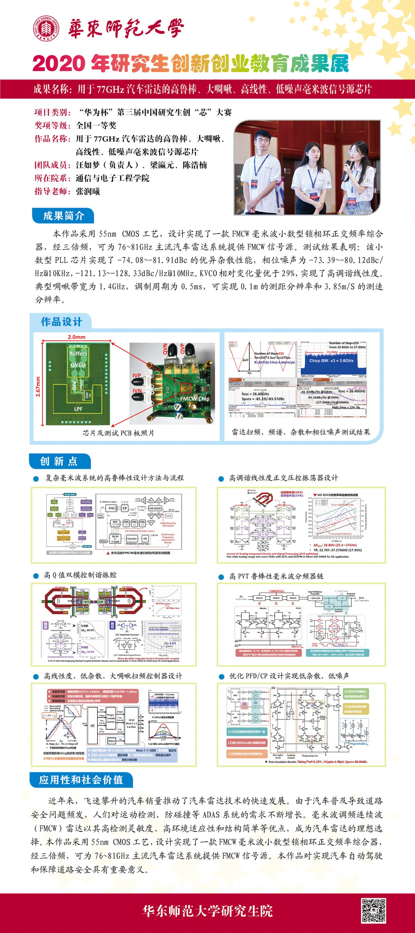 作品名称:用于77GHz汽车雷达的高鲁棒、大啁啾、高线性、低噪声毫米波信号源芯片