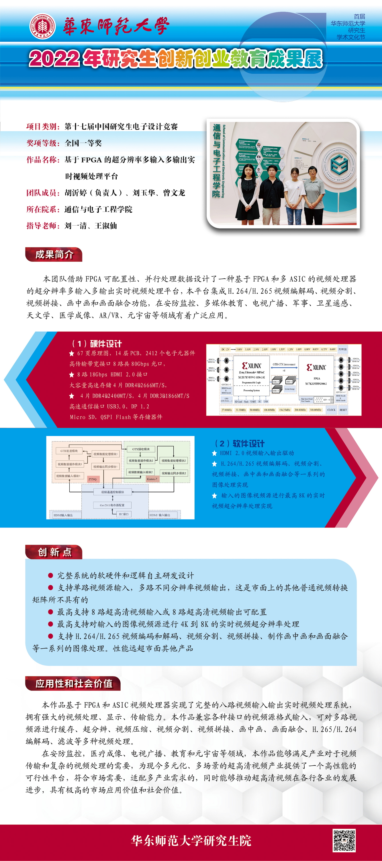 作品名称:基于FPGA的超分辨率多输入多输出实时视频处理平台
