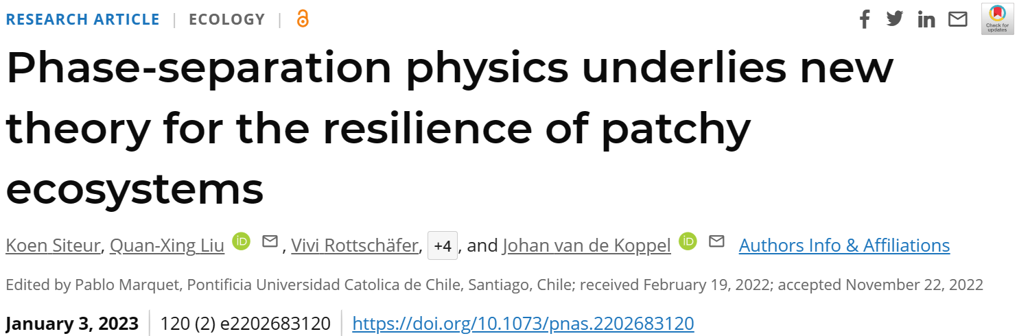 论文链接:Phase-separation physics underlies new theory for the resilience of patchy ecosystems