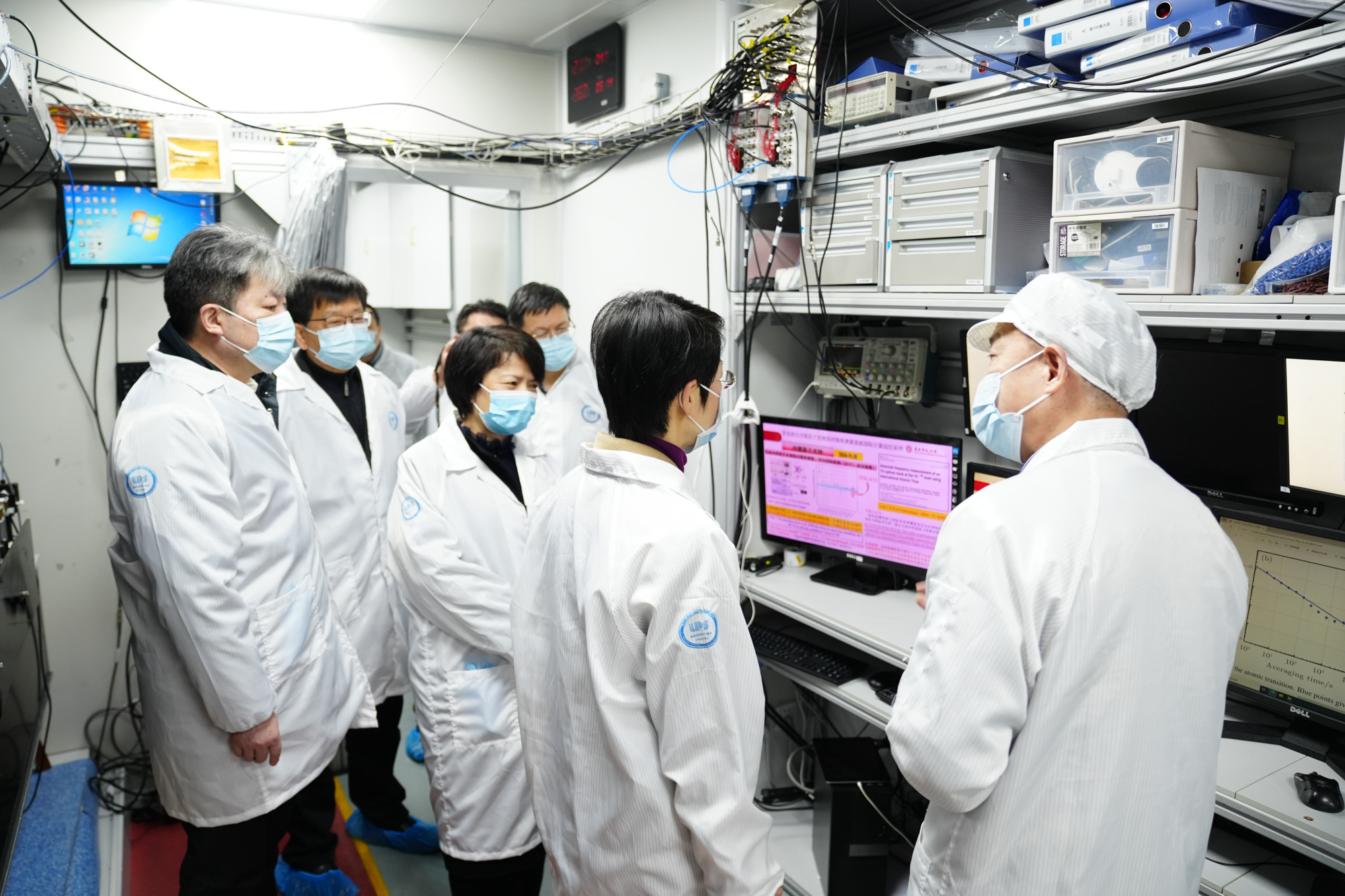 解冬一行随后来到光学大楼,参观精密光谱科学与技术国家重点实验室,听取国家重点实验室主任程亚关于国重室的发展历史、近年来的重大科学发现和关键核心技术突破、未来发展方向等方面的工作汇报。