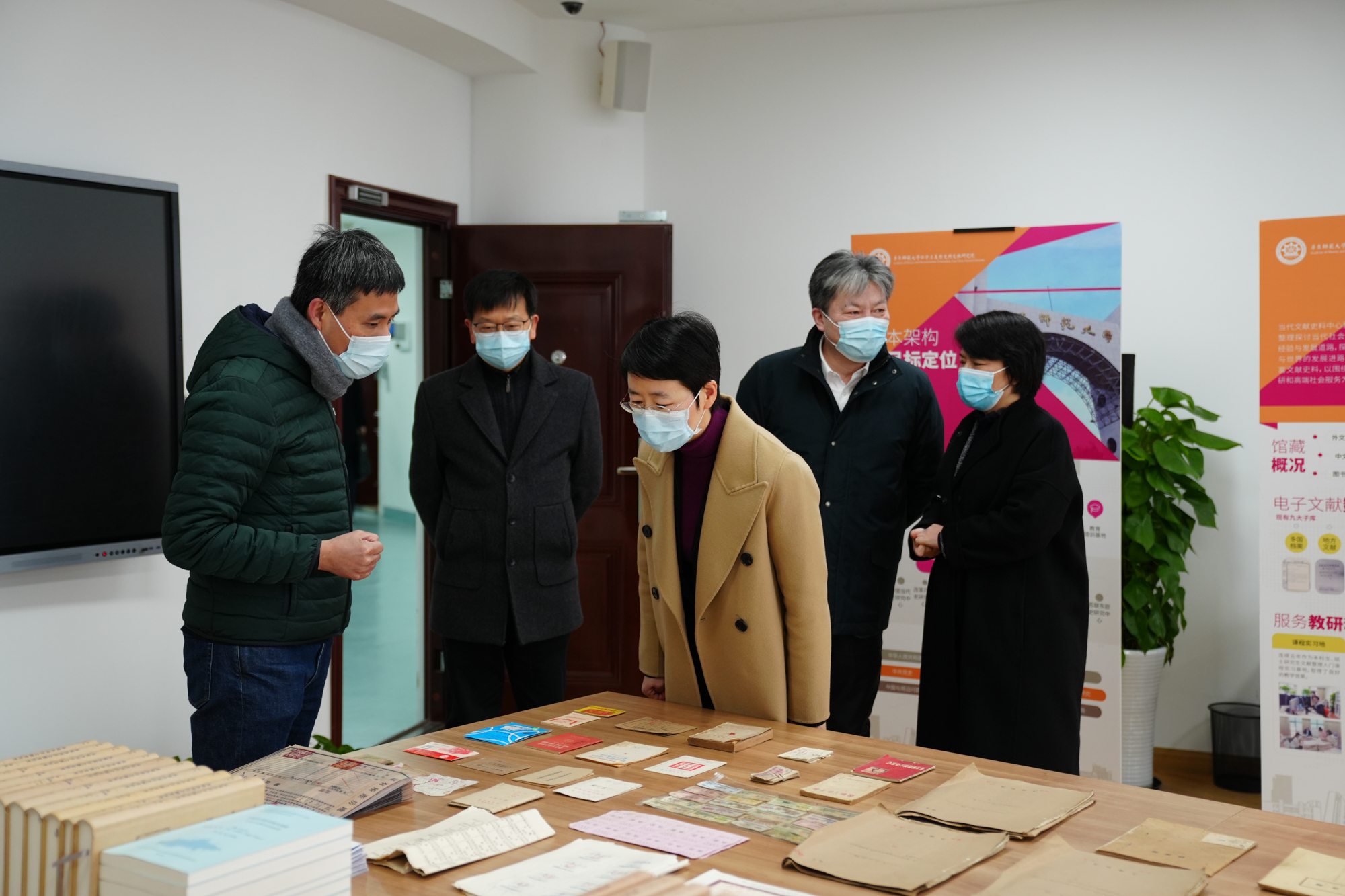 在社会主义历史与文献研究院, 解冬一行观看了冷战时期中外经济史相关史料展出,仔细倾听研究院院长孟钟捷关于馆藏文献以及文献收集、整理与利用情况的介绍。