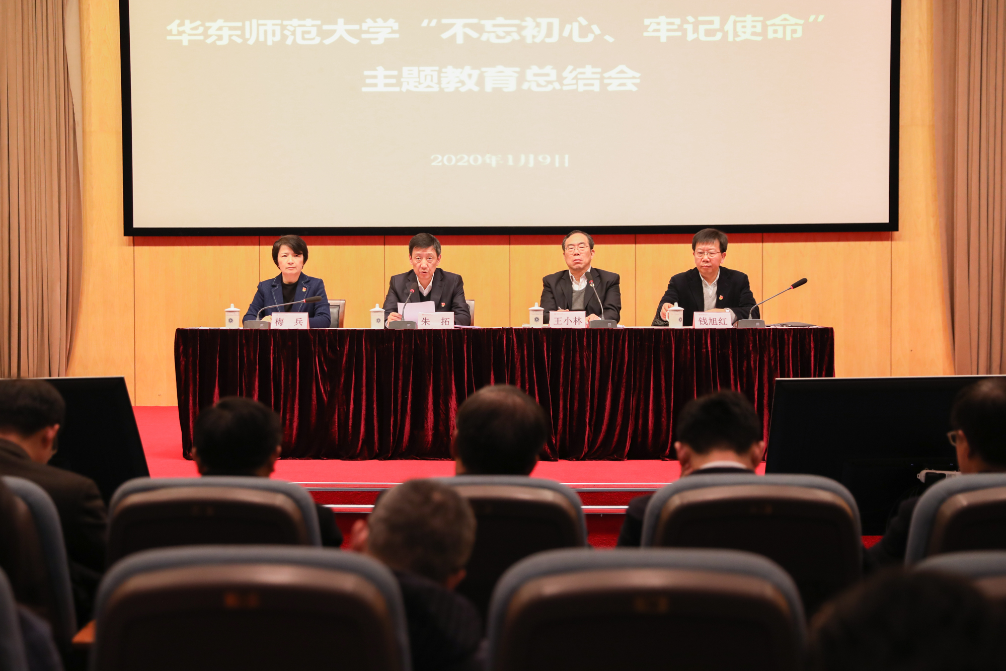 1月9日,永利皇宫登录官网“不忘初心、牢记使命”主题教育总结会在校举行,全面总结学校“不忘初心、牢记使命”主题教育情况,就巩固拓展主题教育成效、深化主题教育成果转化进行全面部署。教育部第六巡回指导组组长朱拓、教育部高校党建工作联络员王小林出席会议。华东师大党委书记梅兵总结学校主题教育开展情况,校党委副书记、校长钱旭红主持会议。