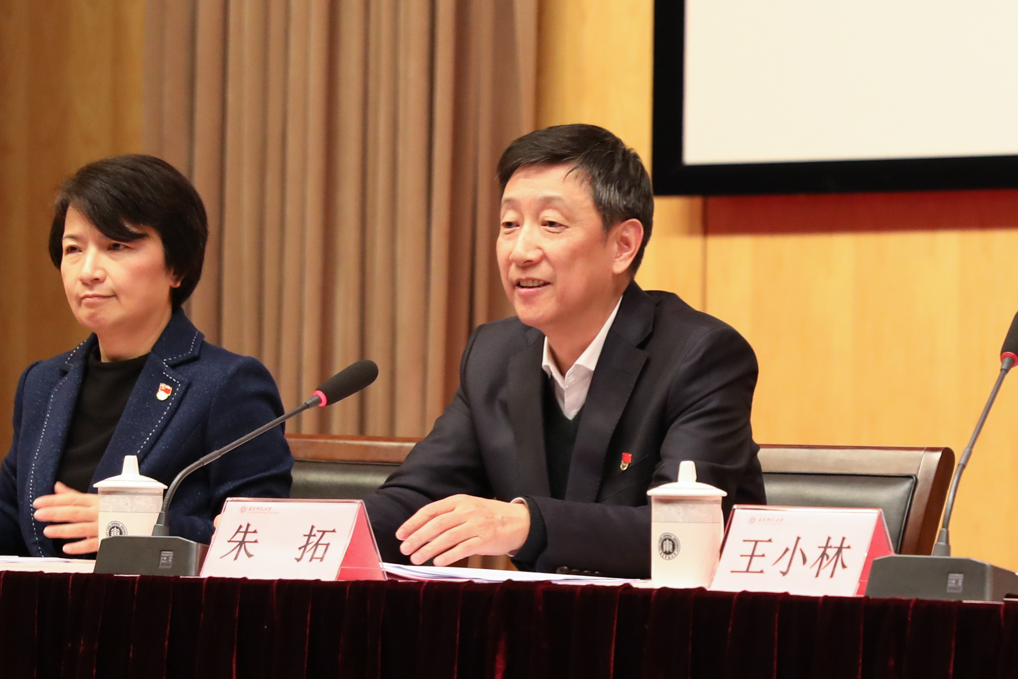 梅兵首先通报校领导班子2019年度民主生活会情况。在教育部第六巡回指导组的指导下,学校于12月9日召开了校领导班子“不忘初心、牢记使命”专题民主生活会。校领导班子成员紧扣学习贯彻习近平新时代中国特色社会主义思想这一主线,聚焦不忘初心、牢记使命这一主题,突出力戒形式主义、官僚主义这一重要内容,紧紧围绕为党育人、为国育才,围绕理论学习有收获、思想政治受洗礼、干事创业敢担当、为民服务解难题、清正廉洁作表率的目标,紧密联系思想和工作实际,切实查摆问题,深入剖析根源,严肃开展批评和自我批评。会议还明确提出了努力方向和整改措施:一是进一步强化政治建设,全面加强党对学校发展的领导;二是进一步强化理论学习,持续提升理论学习水平和实效;三是进一步强化作风建设,形成学校事业发展的更大合力;四是进一步强化责任担当,推动内涵建设工作取得新成效;五是进一步发挥廉政表率作用,持续压实落细主体责任。关于会后工作推进,梅兵表示,领导班子将认真梳理前阶段主题教育中查找出来的问题和专题民主生活会上查摆的问题,以及相互批评中提出的意见,进一步细化完善整改措施,扎实推进整改落实,并定期督查整改情况。校领导班子成员要针对个人存在的问题列出整改清单,尽快整改,起到率先垂范的作用。
