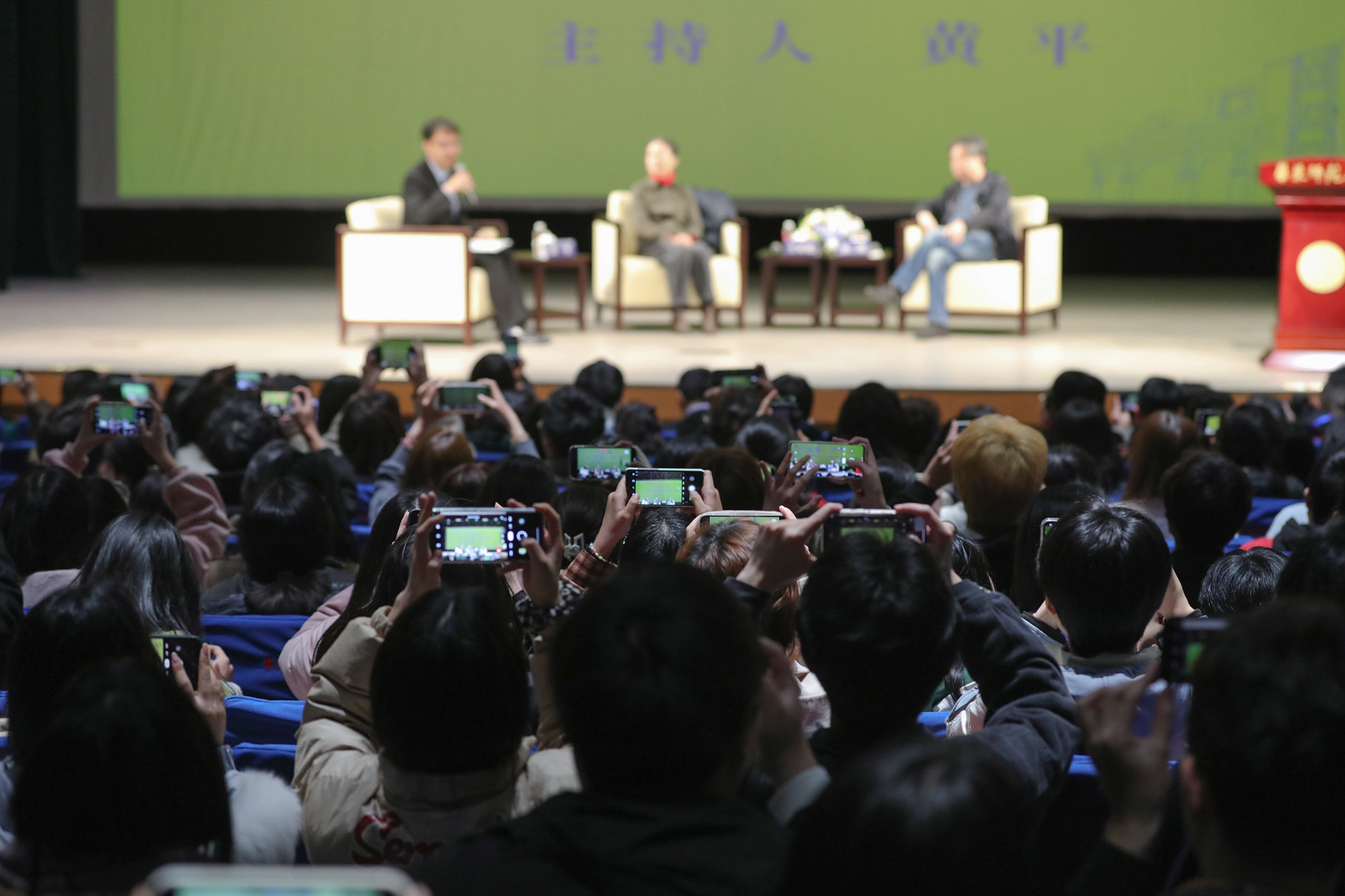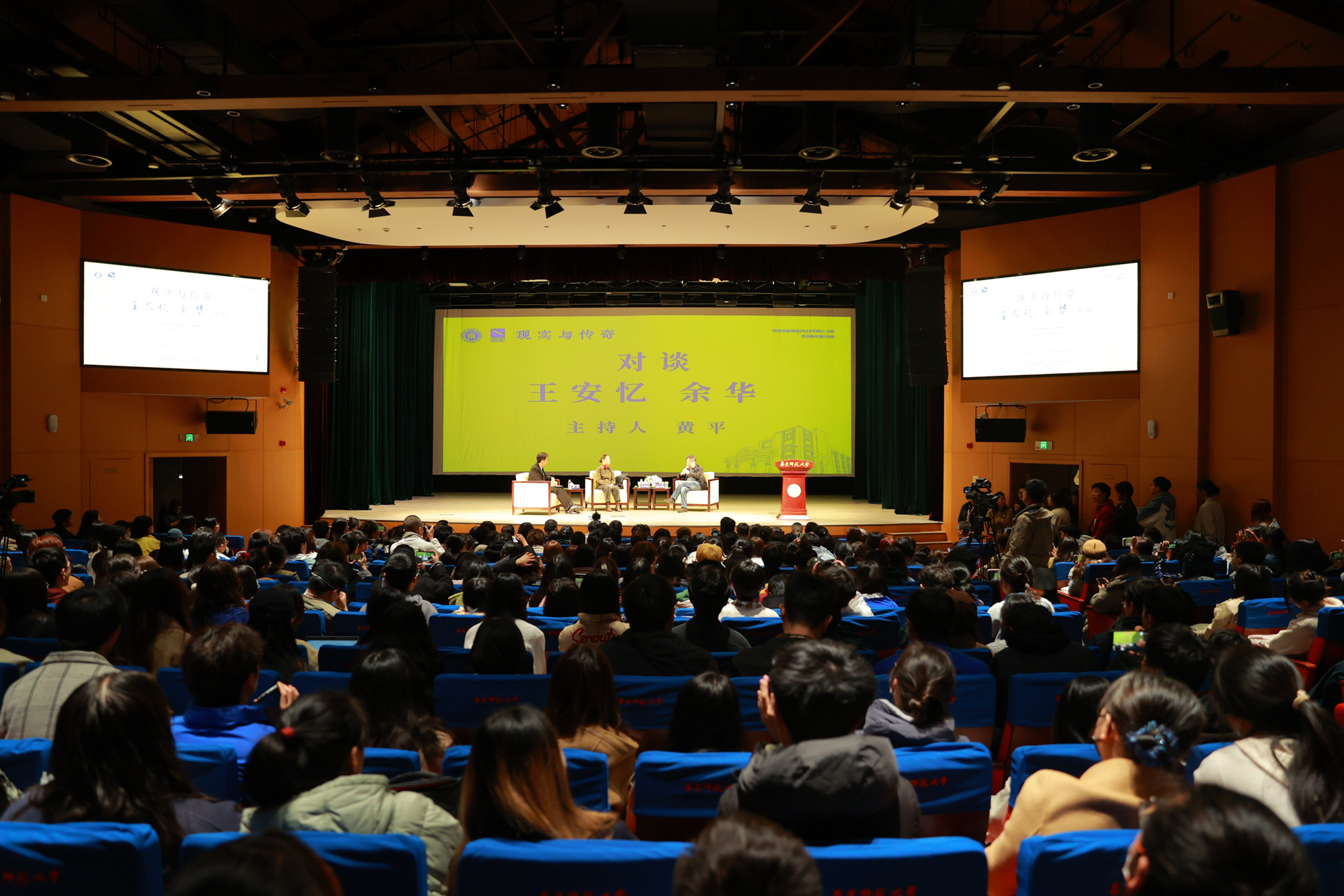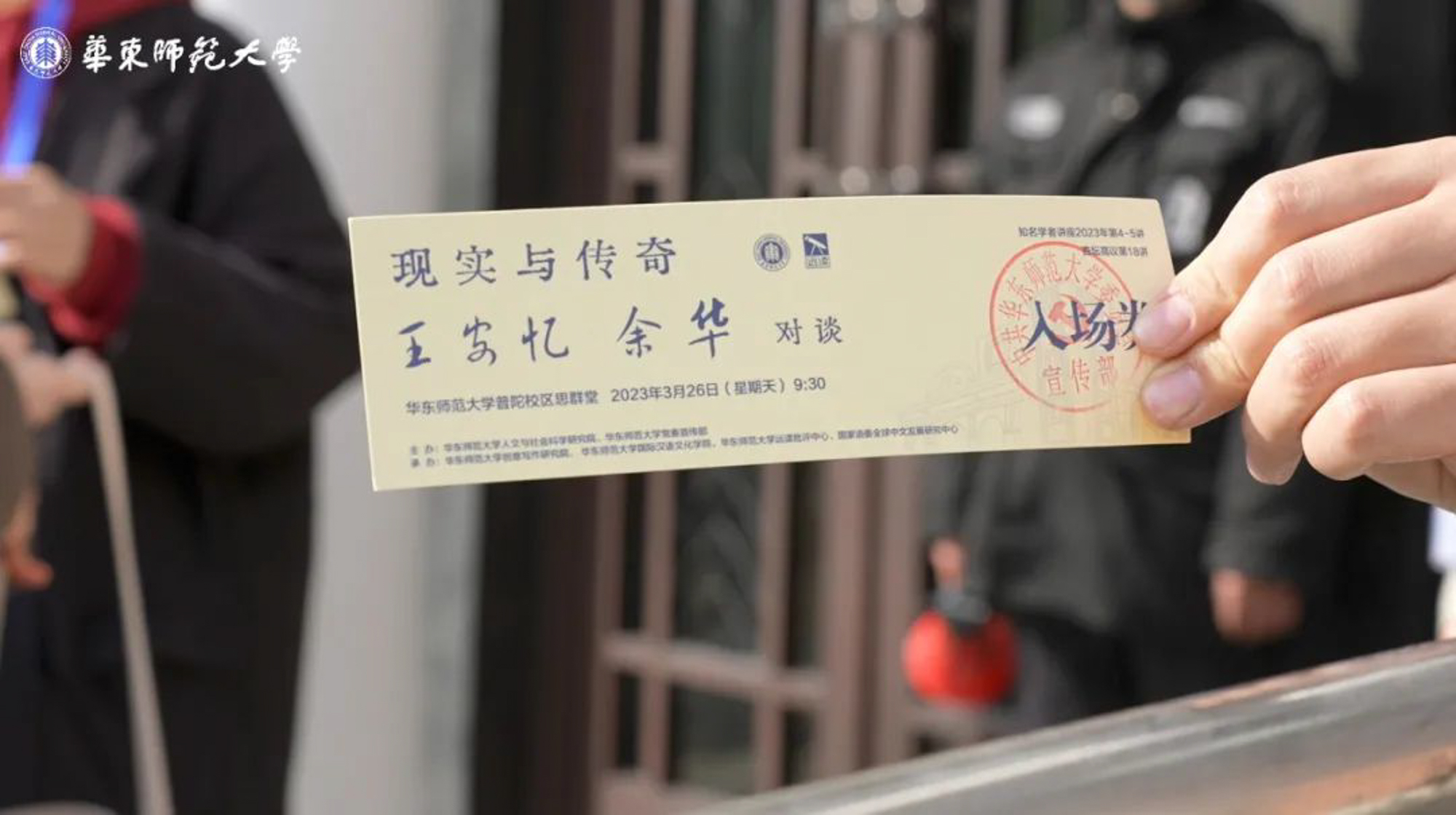 这场“现实与传奇:王安忆余华对谈”的活动消息一经公布,立即引起轰动,学生们连夜排队领票追“星”。活动通过华东师大微信视频号、澎湃新闻客户端等渠道实时直播,线上观看共计一百多万次。