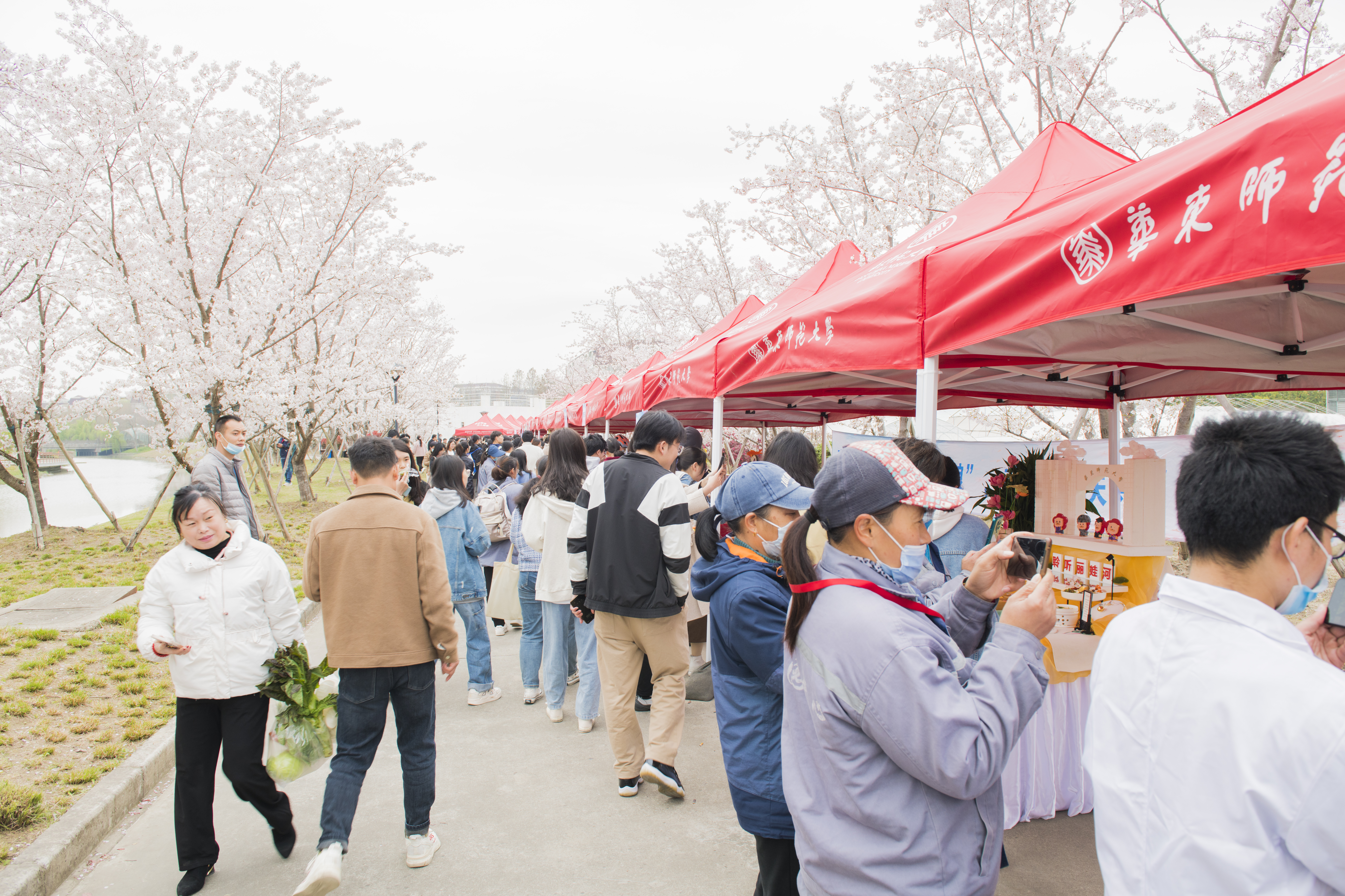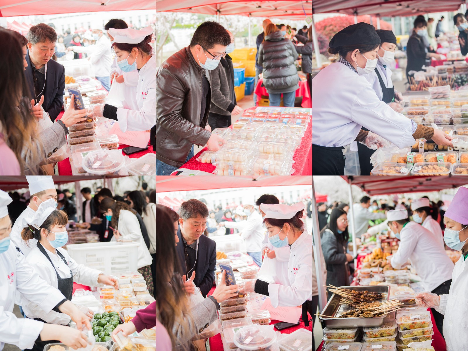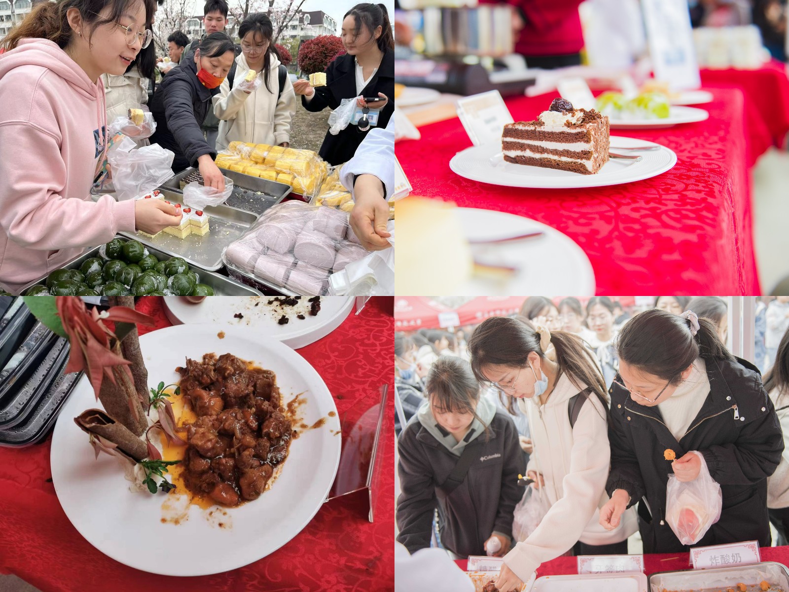 上午10:30,樱“木”花“道”上已布设好了将近40个展棚,各餐饮服务单位特色美食齐聚亮相,中西糕点任您选,菜肴卤味随您挑;零食干果溢满台,新鲜当季蔬果价惠优,美食盛宴等着您。活动开始后,广大师生齐聚在各展销台前选购心仪美食。