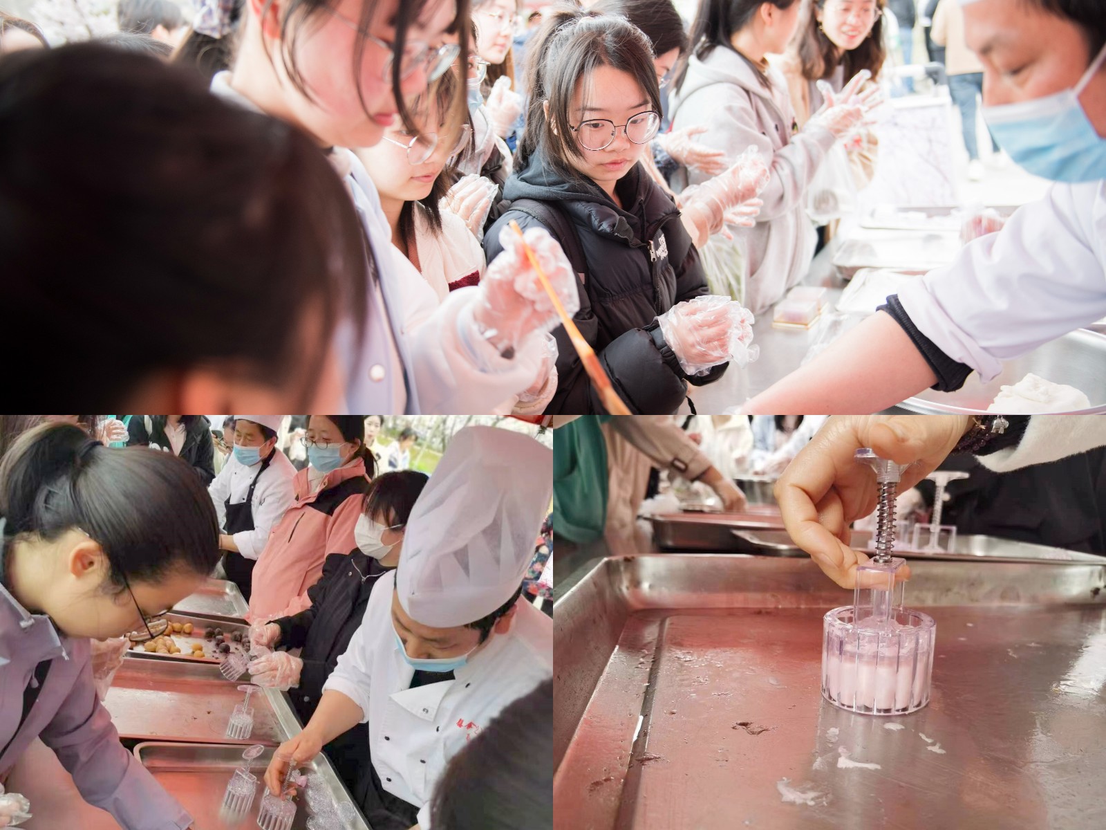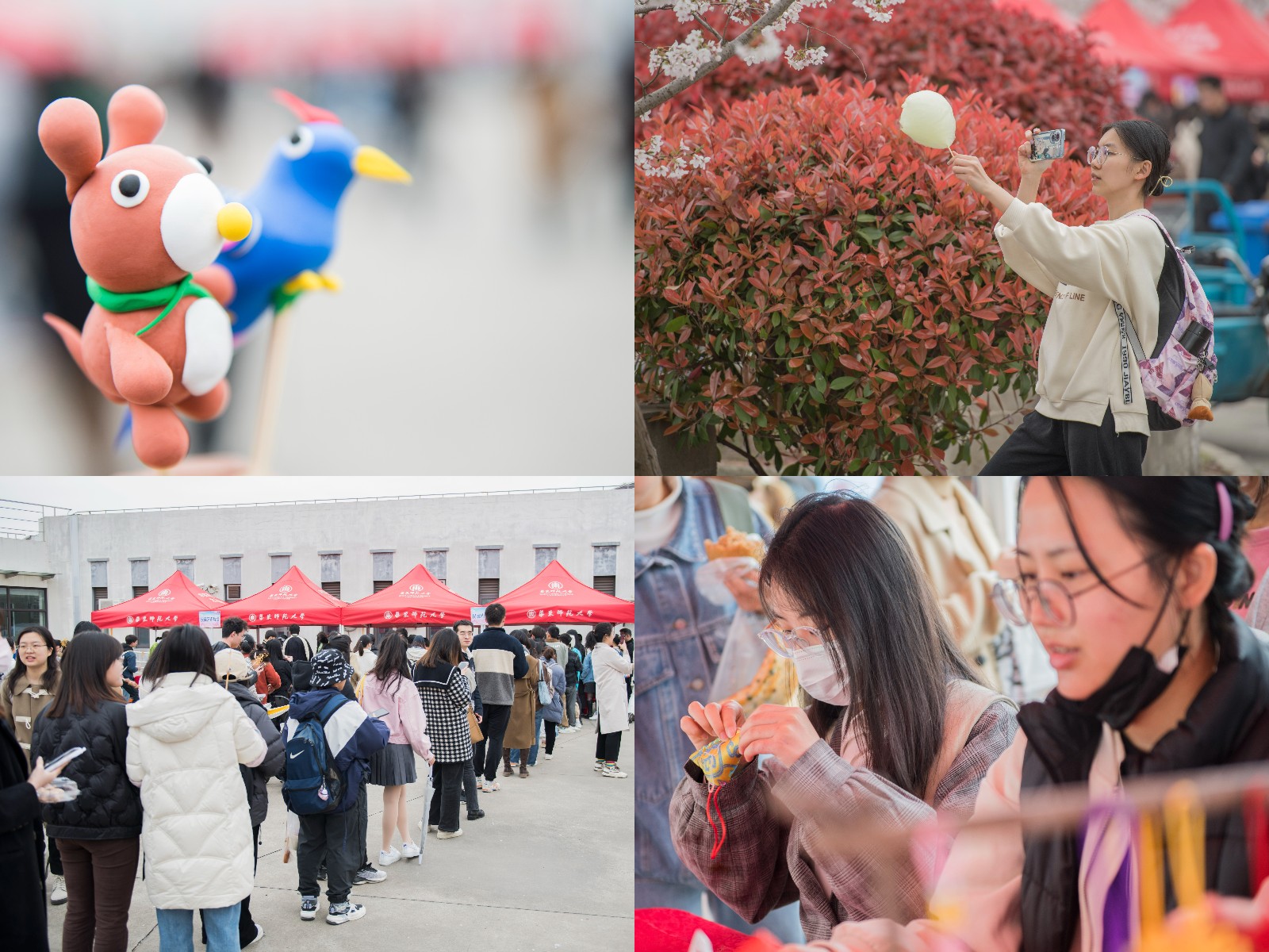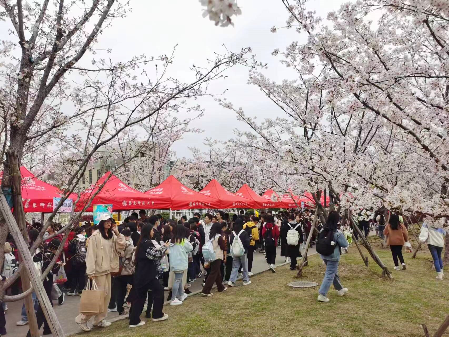 上午10:30,樱“木”花“道”上已布设好了将近40个展棚,各餐饮服务单位特色美食齐聚亮相,中西糕点任您选,菜肴卤味随您挑;零食干果溢满台,新鲜当季蔬果价惠优,美食盛宴等着您。活动开始后,广大师生齐聚在各展销台前选购心仪美食。