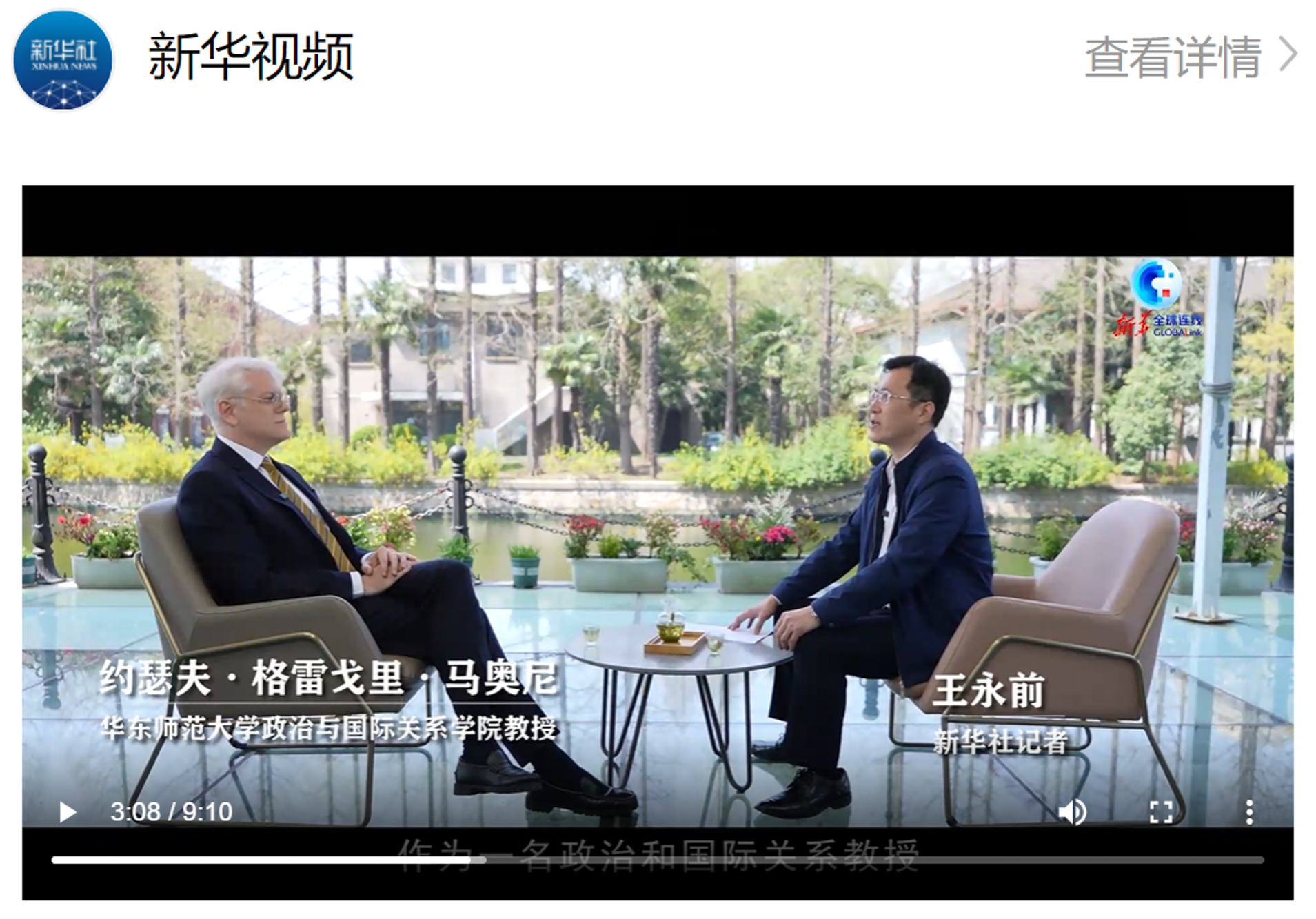 专为本次对谈摄制的中英双语短片,已于3月31日、4月4日分别在新华社中英文客户端等平台播发。截至本文发稿时,中文短片浏览量已超175万。