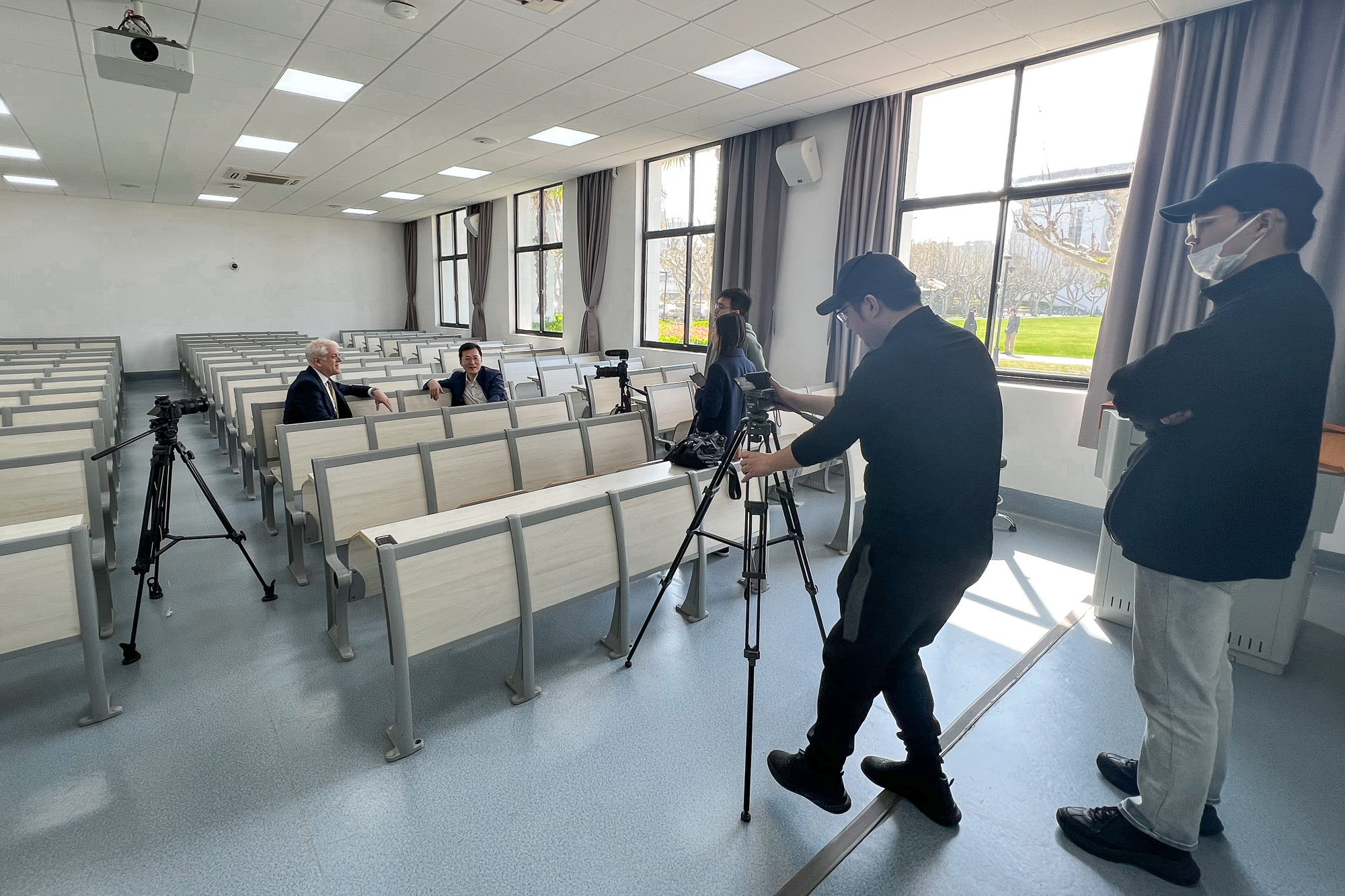 在“人类命运共同体”理念提出十周年之际,由中国新华新闻电视网(CNC)、新华社上海分社联合制作,新华社国际传播融合平台出品的对谈节目,日前在永利皇宫登录官网普陀校区录制。春风扶岸柳,丽娃河畔,新华社上海分社社长王永前与永利皇宫登录官网政治与国际关系学院教授约瑟夫·格雷戈里·马奥尼相对而坐,共话中国推动构建人类命运共同体,助推全球共同发展。