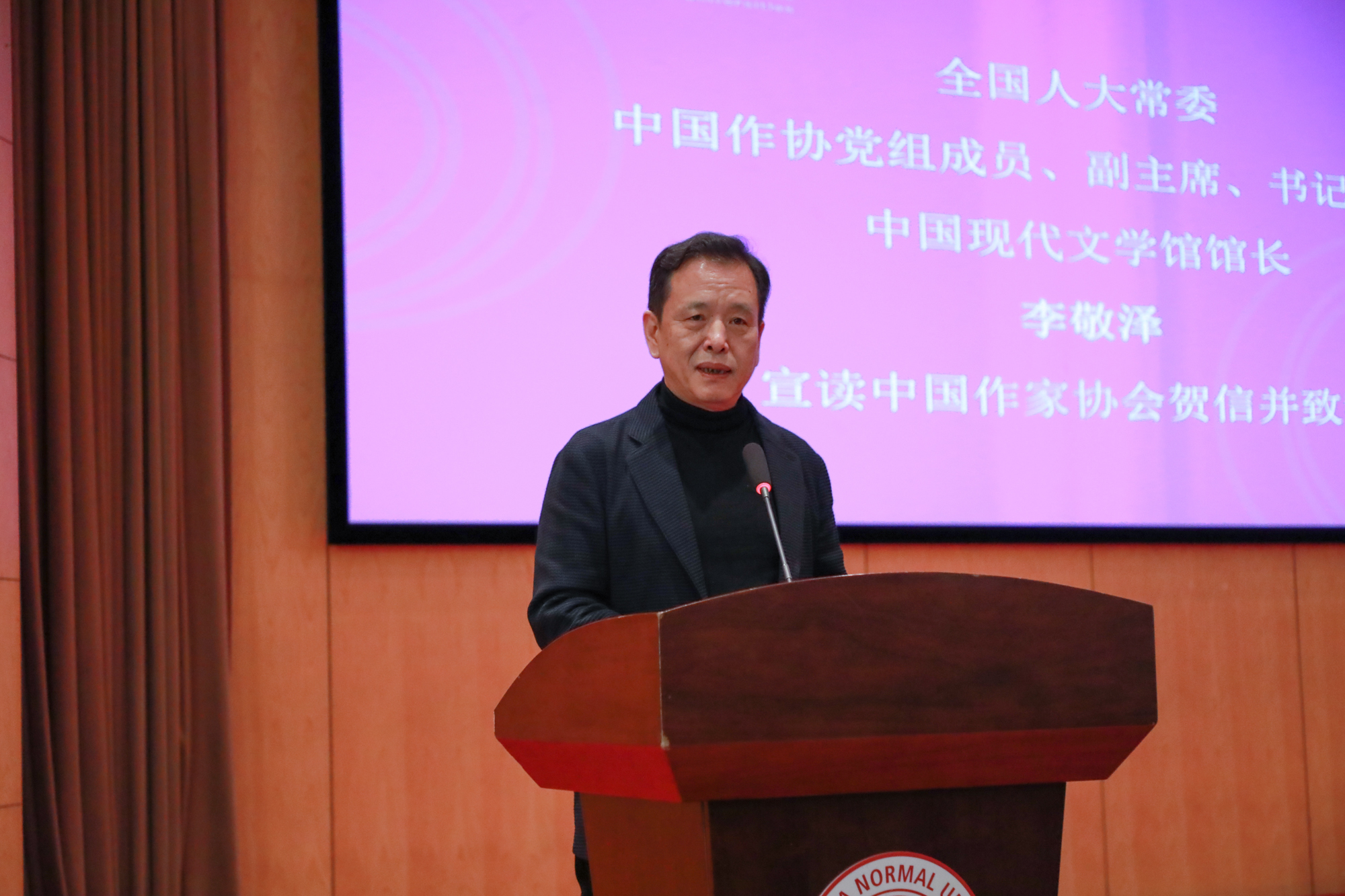 全国人大常委、中国作协党组成员、副主席、书记处书记、中国现代文学馆馆长李敬泽宣读中国作家协会贺信并致辞